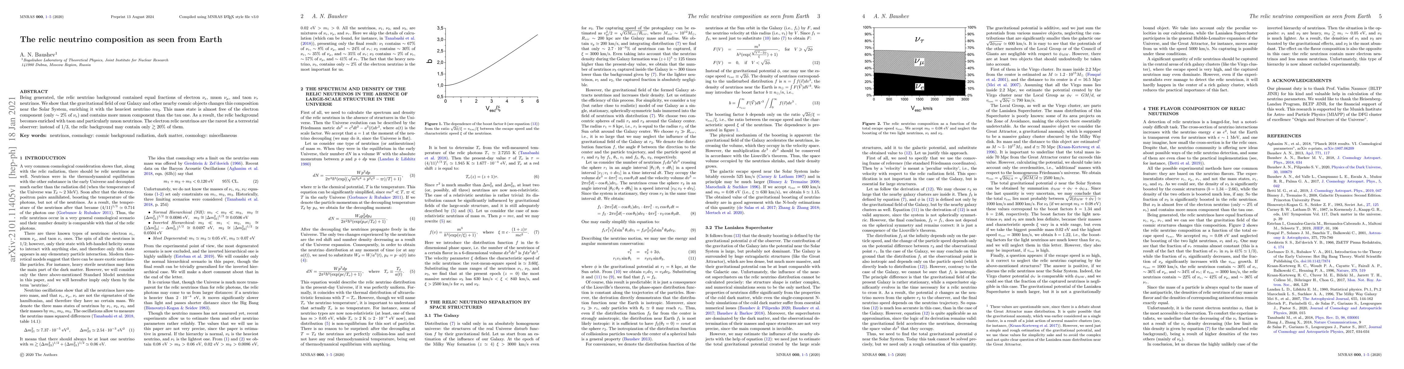 Being generated, the relic neutrino background contained equal fractions of electron $\nu_e$, muon $\nu_\mu$, and taon $\nu_\tau$ neutrinos. We show that the gravitational field of our Galaxy and other nearby cosmic objects changes this composition near the Solar System, enriching it with the heaviest neutrino $nu_3$. This mass state is almost free of the electron component (only $\sim 2\%$ of $\nu_e$) and contains more muon component than the tau one. As a result, the relic background becomes enriched with taon and particularly muon neutrinos. The electron relic neutrinos are the rarest for a terrestrial observer: instead of $1/3$, the relic background may contain only $\gtrsim 20\%$ of them.