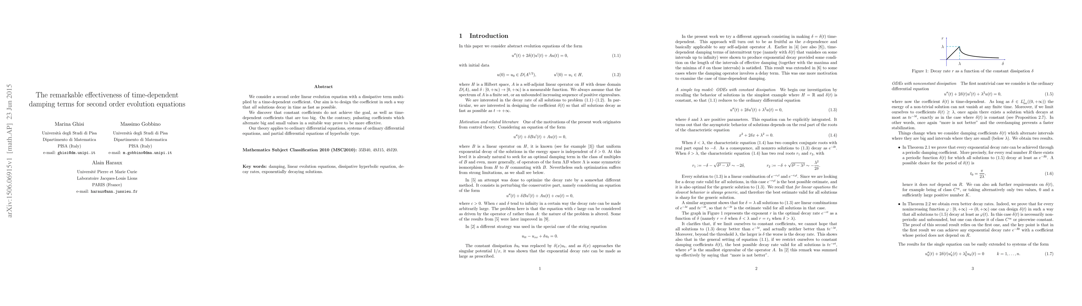 The research reveals that time-dependent damping terms in second order evolution equations, including ODEs, systems of ODEs, and hyperbolic PDEs, significantly enhance solution decay compared to constant or large time-dependent coefficients. Pulsating coefficients, alternating between big and small values, are found to be most effective.