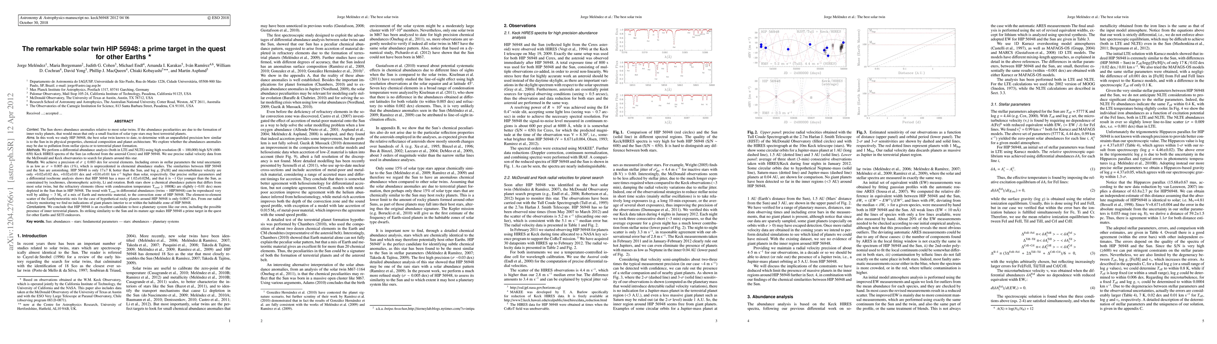 Astronomers studied HIP 56948, a solar twin star, to determine its similarity to the Sun and search for planets around it, finding that it's a prime target in the quest for other Earths.