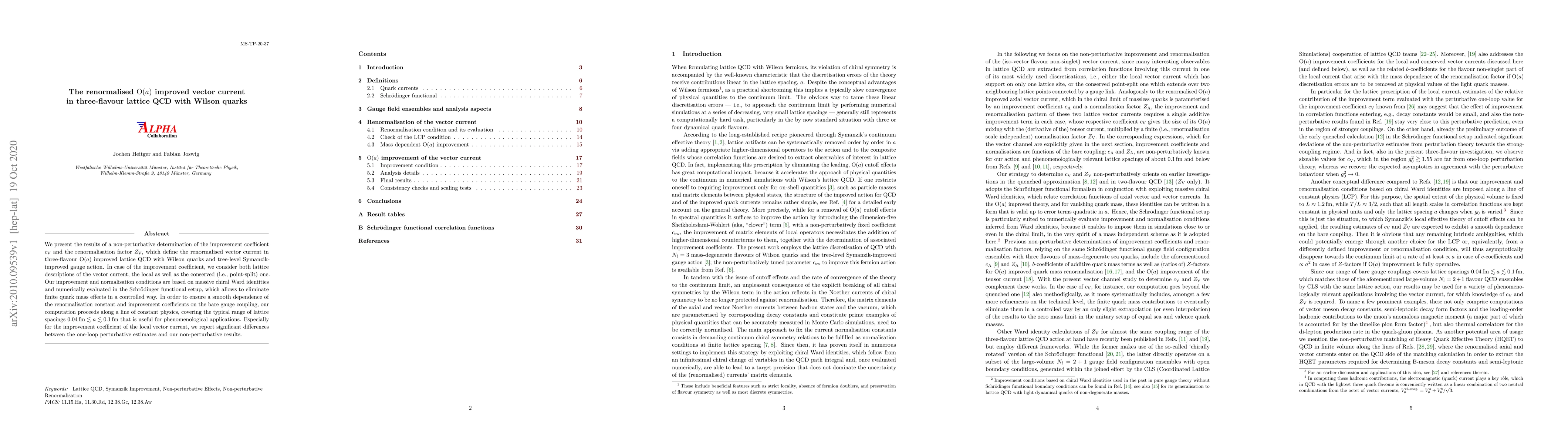This paper presents non-perturbative results for the improvement coefficient $c_\mathrm{V}$ and the renormalisation factor $Z_\mathrm{V}$ in three-flavour $\mathrm{O}(a)$ improved lattice QCD with Wilson quarks, revealing significant discrepancies between perturbative estimates and non-perturbative calculations.