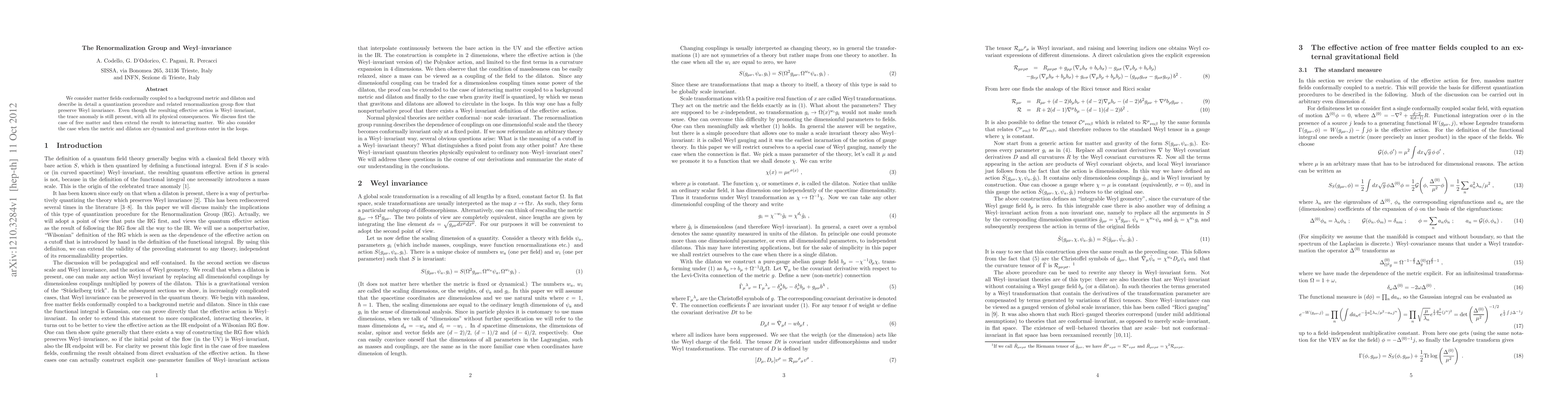 The research employs the framework of the renormalization group (RG) flow, focusing on Weyl-invariant quantization of matter fields conformally coupled to a background metric and dilaton. The study details a quantization procedure and RG flow that preserve Weyl invariance, even though the trace anomaly remains present with its physical consequences.