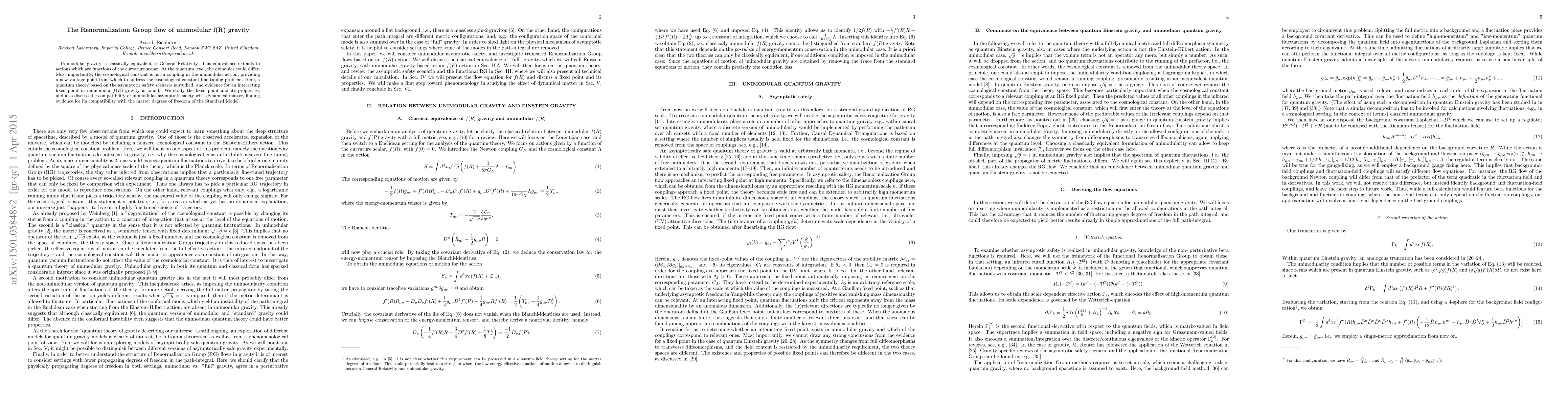 This paper investigates the renormalization group flow of unimodular f(R) gravity, finding evidence for an interacting fixed point that supports the asymptotic safety scenario. It also explores the compatibility of this theory with the matter degrees of freedom of the Standard Model, suggesting a potential resolution to the cosmological constant fine-tuning problem.