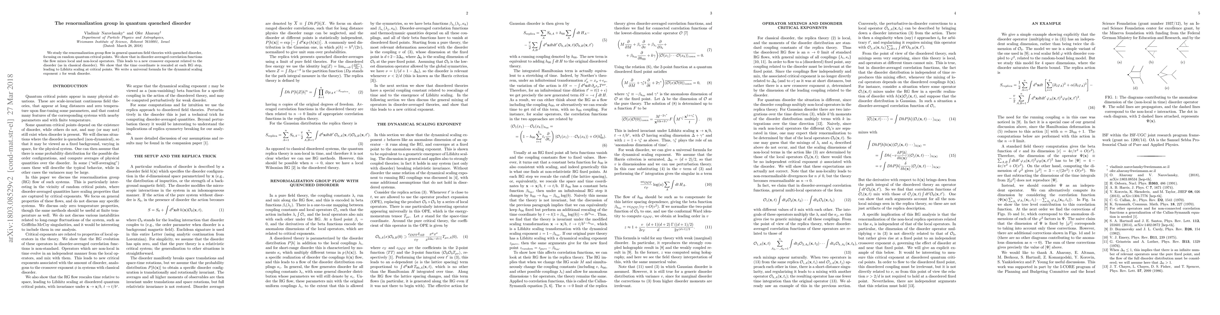 This paper investigates the renormalization group flow in quantum field theories with quenched disorder, revealing that it mixes local and non-local operators, resulting in a new crossover exponent tied to the disorder. It also demonstrates Lifshitz scaling at critical points and provides a universal formula for the dynamical scaling exponent z under weak disorder.