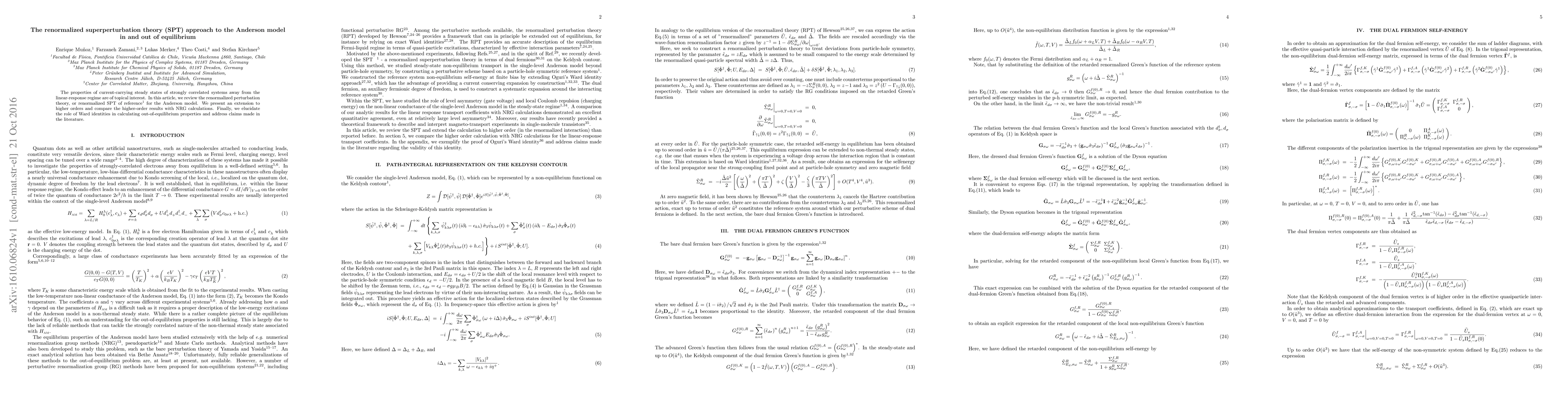 The properties of current-carrying steady states of strongly correlated systems away from the linear-response regime are of topical interest. In this article, we review the renormalized perturbation theory, or renormalized SPT of reference [1] for the Anderson model. We present an extension to higher orders and compare the higher-order results with NRG calculations. Finally, we elucidate the role of Ward identities in calculating out-of-equilibrium properties and address claims made in the literature.