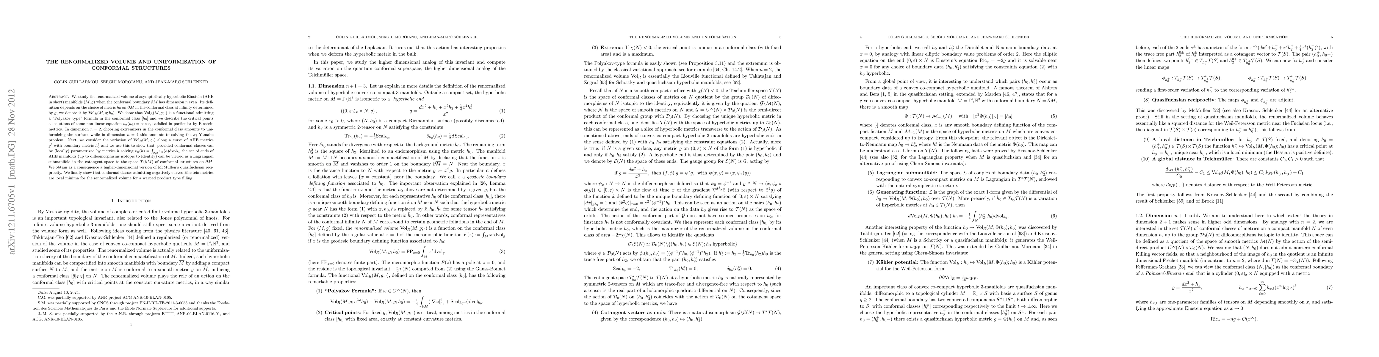 We study the renormalized volume of asymptotically hyperbolic Einstein (AHE in short) manifolds $(M,g)$ when the conformal boundary $\pl M$ has dimension $n$ even. Its definition depends on the choice of metric $h_0$ on $\partial M$ in the conformal class at infinity determined by $g$, we denote it by ${\rm Vol}_R(M,g;h_0)$. We show that ${\rm Vol}_R(M,g;\cdot)$ is a functional admitting a "Polyakov type" formula in the conformal class $[h_0]$ and we describe the critical points as solutions of some non-linear equation $v_n(h_0)={\rm const}$, satisfied in particular by Einstein metrics. In dimension $n=2$, choosing extremizers in the conformal class amounts to uniformizing the surface, while in dimension $n=4$ this amounts to solving the $\sigma_2$-Yamabe problem. Next, we consider the variation of ${\rm Vol}_R(M,\cdot;\cdot)$ along a curve of AHE metrics $g^t$ with boundary metric $h_0^t$ and we use this to show that, provided conformal classes can be (locally) parametrized by metrics $h$ solving $v_n(h)=\int_{\pl M}v_n(h){\rm dvol}_{h}$, the set of ends of AHE manifolds (up to diffeomorphisms isotopic to Identity) can be viewed as a Lagrangian submanifold in the cotangent space to the space $\mc{T}(\pl M)$ of conformal structures on $\pl M$. We obtain as a consequence a higher-dimensional version of McMullen's quasifuchsian reciprocity. We finally show that conformal classes admitting negatively curved Einstein metrics are local minima for the renormalized volume for a warped product type filling.