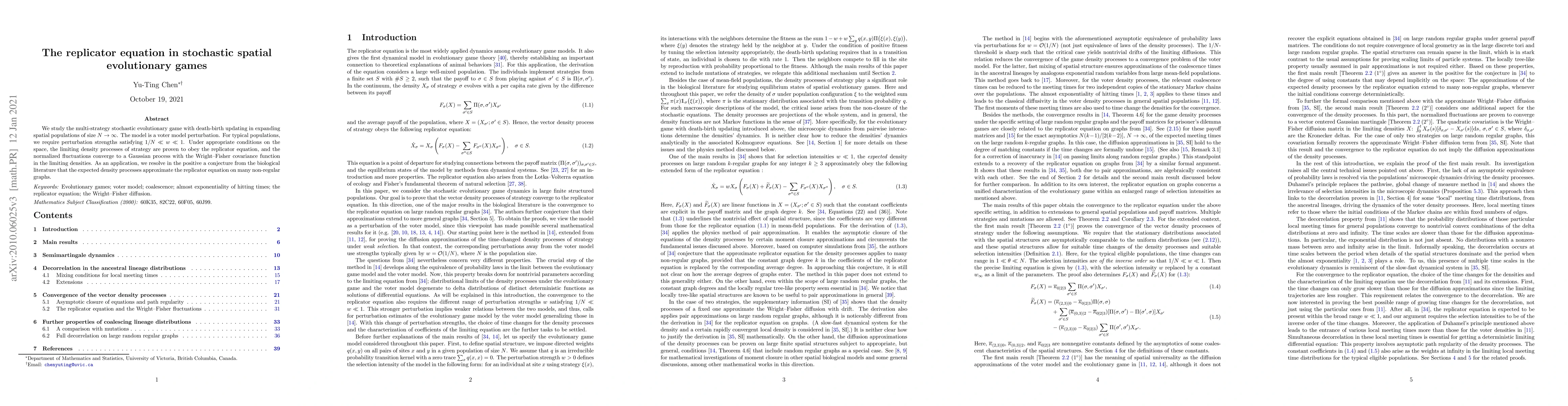 We study the multi-strategy stochastic evolutionary game with death-birth updating in expanding spatial populations of size $N\to \infty$. The model is a voter model perturbation. For typical populations, we require perturbation strengths satisfying $1/N\ll w\ll 1$. Under appropriate conditions on the space, the limiting density processes of strategy are proven to obey the replicator equation, and the normalized fluctuations converge to a Gaussian process with the Wright-Fisher covariance function in the limiting densities. As an application, we resolve in the positive a conjecture from the biological literature that the expected density processes approximate the replicator equation on many non-regular graphs.
