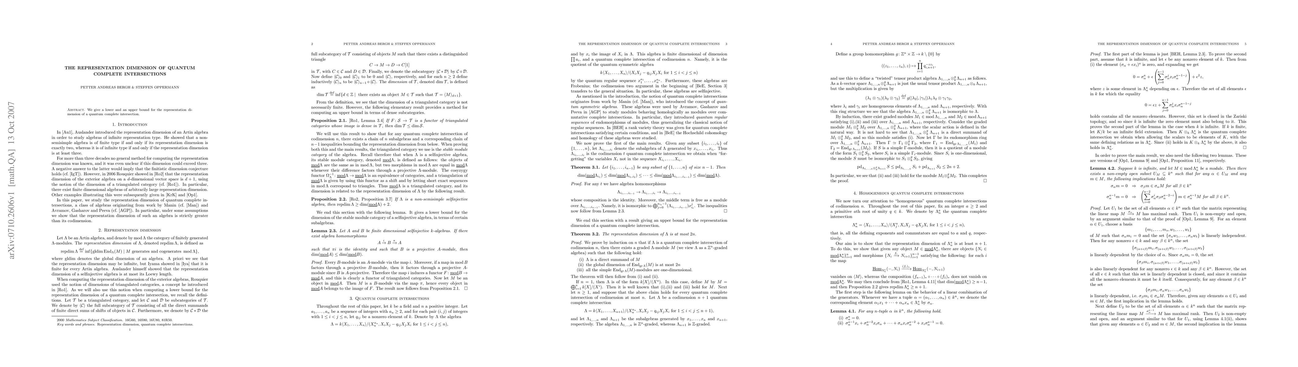 This paper explores the representation dimension of quantum complete intersections, demonstrating that it is at most twice the algebra's codimension, with a stricter inequality for homogeneous cases.