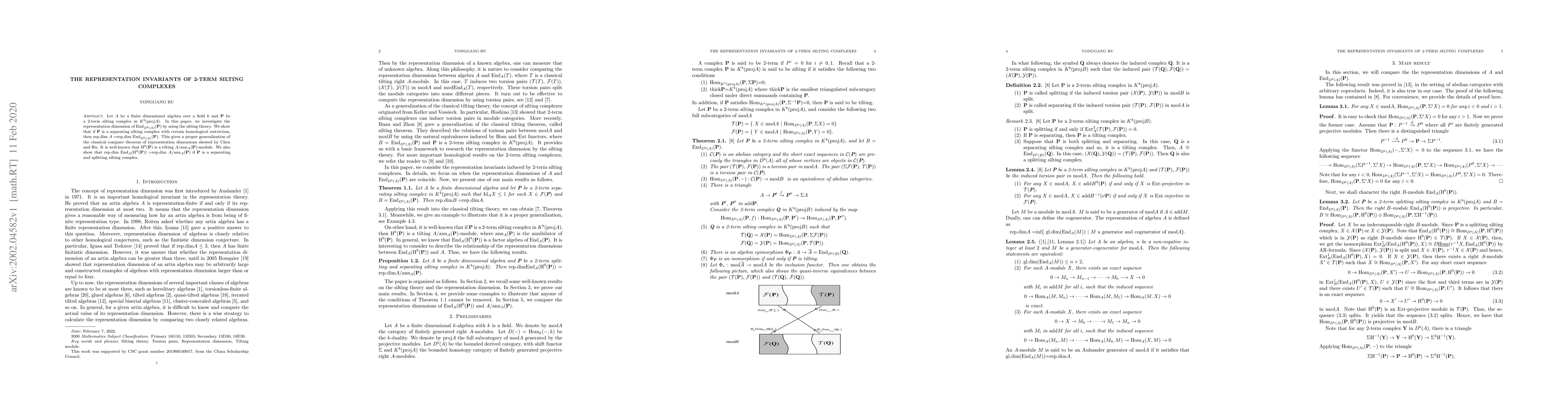 Let $A$ be a finite dimensional algebra over a field $k$ and $\textbf{P}$ be a 2-term silting complex in $K^{b}(\text{proj}A)$. In this paper, we investigate the representation dimension of $\text{End}_{D^{b}(A)} (\textbf{P})$ by using the silting theory. We show that if $\textbf{P}$ is a separating silting complex with certain homological restriction, then rep.dim $A=$rep.dim $\text{End}_{D^{b}(A)}(\textbf{P})$. This gives a proper generalization of the classical compare theorem of representation dimensions showed by Chen and Hu. It is well-known that $\text{H}^{0}(\textbf{P})$ is a tilting $A/\text{ann}_{A} (\textbf{P})$-module. We also show that rep.dim $\text{End}_{A} (\text{H}^{0}(\textbf{P})) = $rep.dim $A/\text{ann}_{A} (\textbf{P})$ if $\textbf{P}$ is a separating and splitting silting complex.