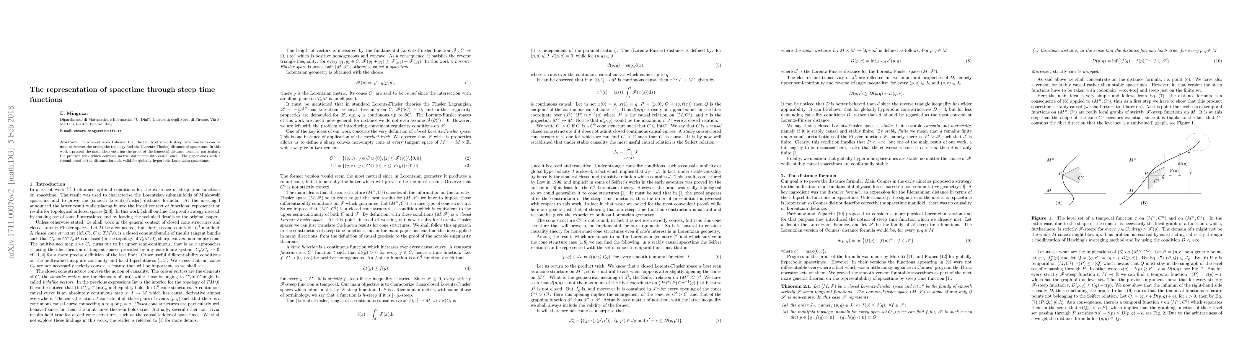 This paper explores the use of smooth steep time functions to reconstruct spacetime's order, topology, and Lorentz-Finsler distance, introducing the product trick to convert metric statements into causal ones, and concludes with a proof of the distance formula in globally hyperbolic Lorentzian spacetimes.