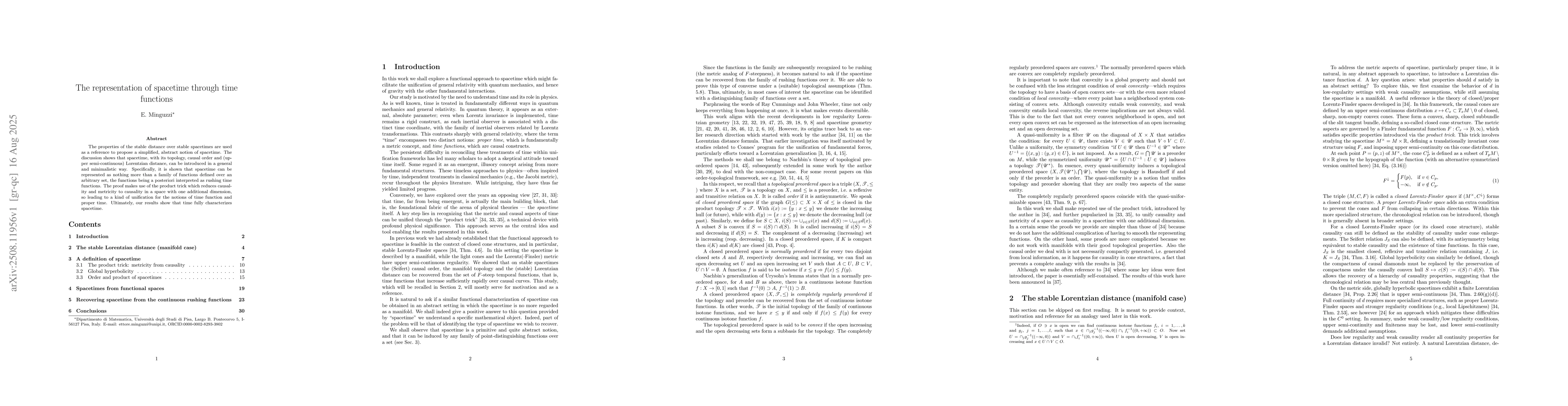 The paper presents a new, abstract notion of spacetime based on time functions, demonstrating that spacetime can be characterized by these functions, thus unifying causality and metric properties in a novel way.