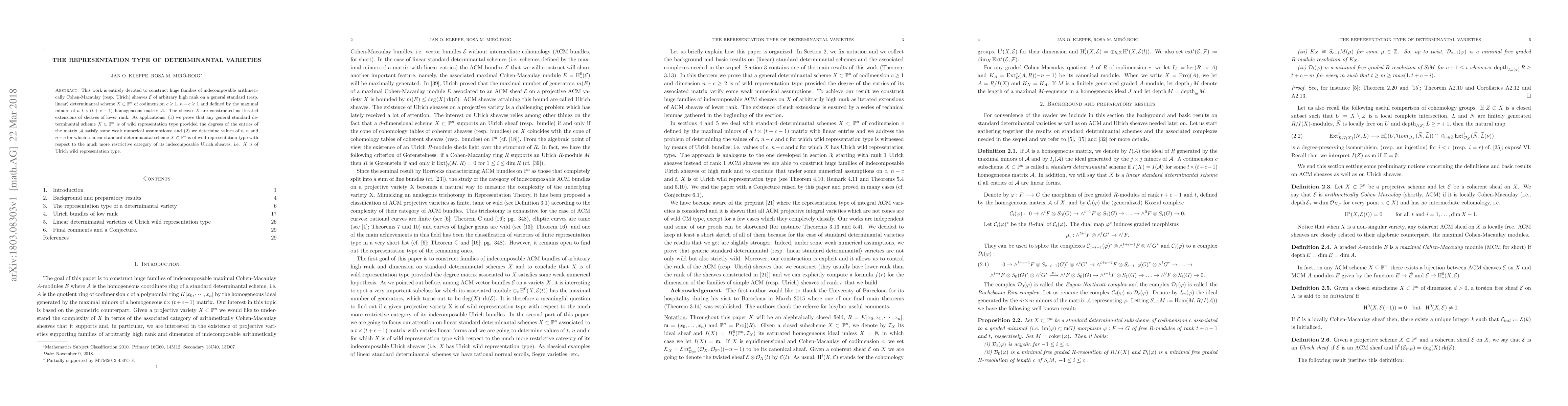 This work is entirely devoted to construct huge families of indecomposable arithmetically Cohen-Macaulay (resp. Ulrich) sheaves E of arbitrary high rank on a general standard (resp. linear) determinantal scheme X\subset \PP^n of codimension c \ge 1, n-c \ge 1 and defined by the maximal minors of a t \times (t+c-1) homogeneous matrix A. The sheaves E are constructed as iterated extensions of sheaves of lower rank. As applications: (1) we prove that any general standard determinantal scheme X\subset \PP^n is of wild representation type provided the degrees of the entries of the matrix A satisfy some weak numerical assumptions; and (2) we determine values of t, n and n-c for which a linear standard determinantal scheme X\subset \PP^n is of wild representation type with respect to the much more restrictive category of its indecomposable Ulrich sheaves, i.e. X is of Ulrich wild representation type.