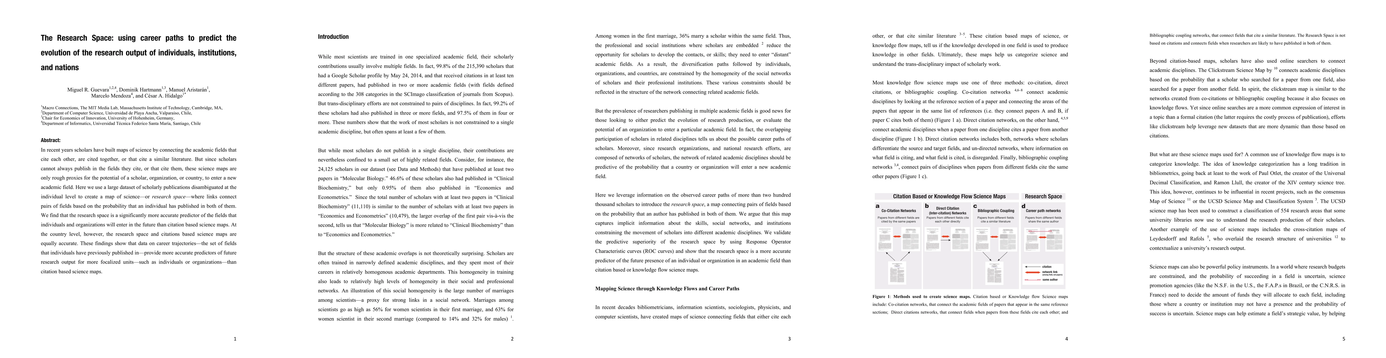 In recent years scholars have built maps of science by connecting the academic fields that cite each other, are cited together, or that cite a similar literature. But since scholars cannot always publish in the fields they cite, or that cite them, these science maps are only rough proxies for the potential of a scholar, organization, or country, to enter a new academic field. Here we use a large dataset of scholarly publications disambiguated at the individual level to create a map of science-or research space-where links connect pairs of fields based on the probability that an individual has published in both of them. We find that the research space is a significantly more accurate predictor of the fields that individuals and organizations will enter in the future than citation based science maps. At the country level, however, the research space and citations based science maps are equally accurate. These findings show that data on career trajectories-the set of fields that individuals have previously published in-provide more accurate predictors of future research output for more focalized units-such as individuals or organizations-than citation based science maps.