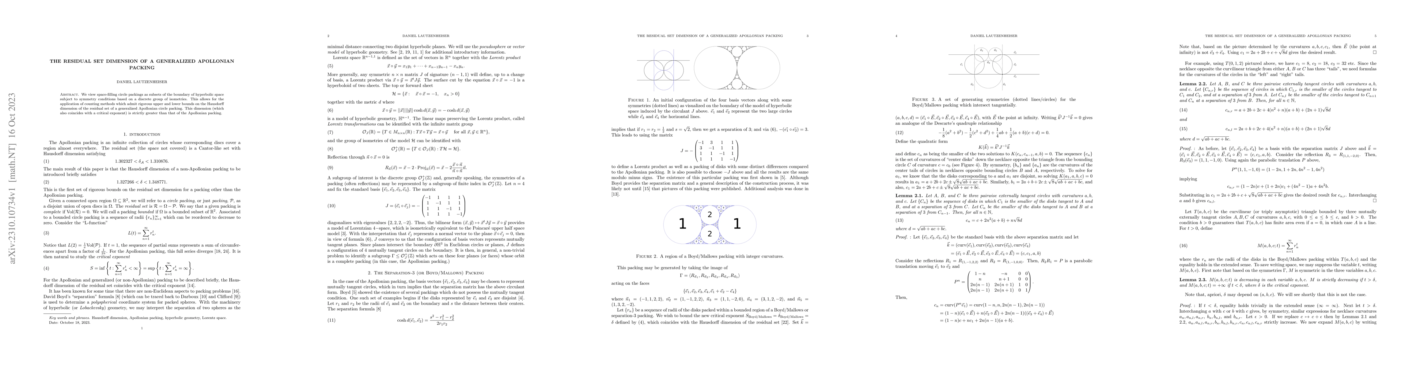 This paper investigates the Hausdorff dimension of the residual set in a generalized Apollonian circle packing within hyperbolic space, showing it to be higher than that of the traditional Apollonian packing using symmetry-based counting methods.