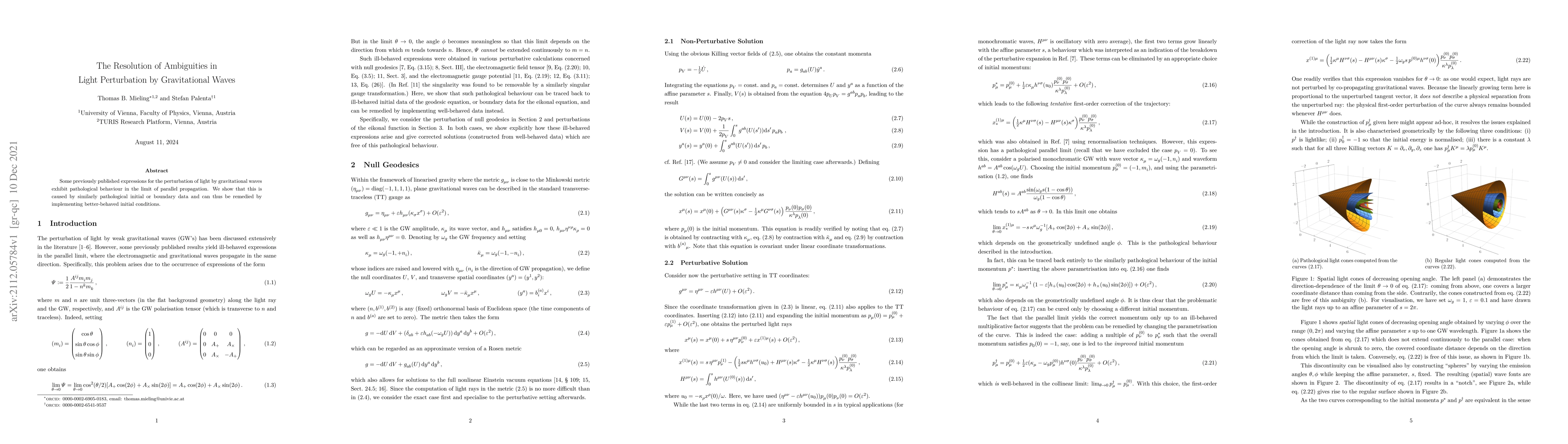 This paper addresses issues in light perturbation by gravitational waves, revealing that problematic behaviors stem from poorly behaved initial data. The solution lies in adopting better-behaved initial conditions to resolve these ambiguities.