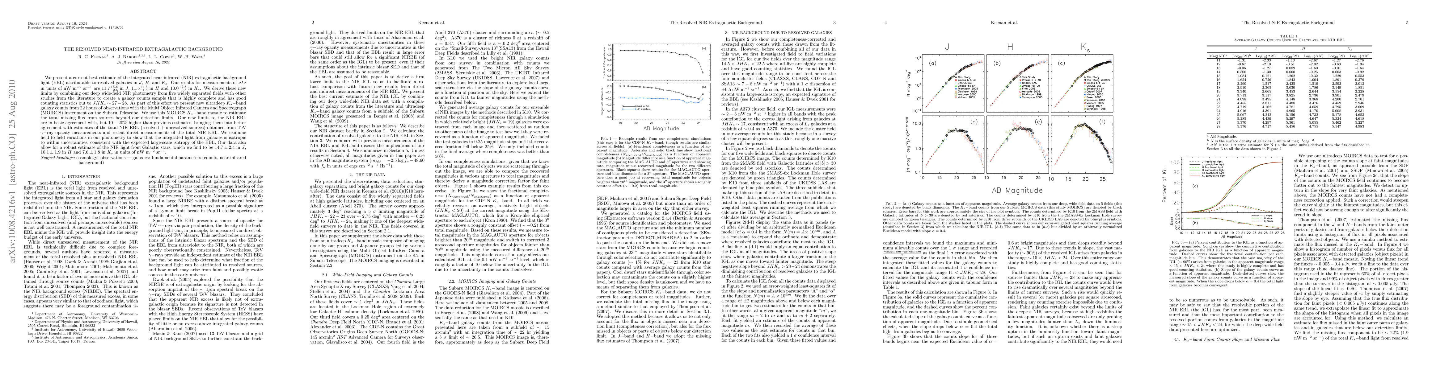 We present a current best estimate of the integrated near-infrared (NIR) extragalactic background light (EBL) attributable to resolved galaxies in J, H, and Ks. Our results in units of nW m-2 sr-1 are 11.7+5.6 -2.6 in J, 11.5+4.5 -1.5 in H and 10.0+2.8 -0.8 in Ks. We derive these new limits by combining our deep wide-field NIR photometry from five widely separated fields with other studies from the literature to create a galaxy counts sample that is highly complete and has good counting statistics out to JHKs ~ 27-28. As part of this effort we present new ultradeep Ks-band galaxy counts from 22 hours of observations with the Multi Object Infrared Camera and Spectrograph (MOIRCS) instrument on the Subaru Telescope. We use this MOIRCS Ks-band mosaic to estimate the total missing flux from sources beyond our detection limits. Our new limits to the NIR EBL are in basic agreement with, but 10 - 20% higher than previous estimates, bringing them into better agreement with estimates of the total NIR EBL (resolved + unresolved sources) obtained from TeV gamma-ray opacity measurements and recent direct measurements of the total NIR EBL. We examine field to field variations in our photometry to show that the integrated light from galaxies is isotropic to within uncertainties, consistent with the expected large-scale isotropy of the EBL. Our data also allow for a robust estimate of the NIR light from Galactic stars, which we find to be 14.7 +/- 2.4 in J, 10.1 +/- 1.9 in H and 7.6 +/- 1.8 in Ks in units of nW m-2 sr-1.