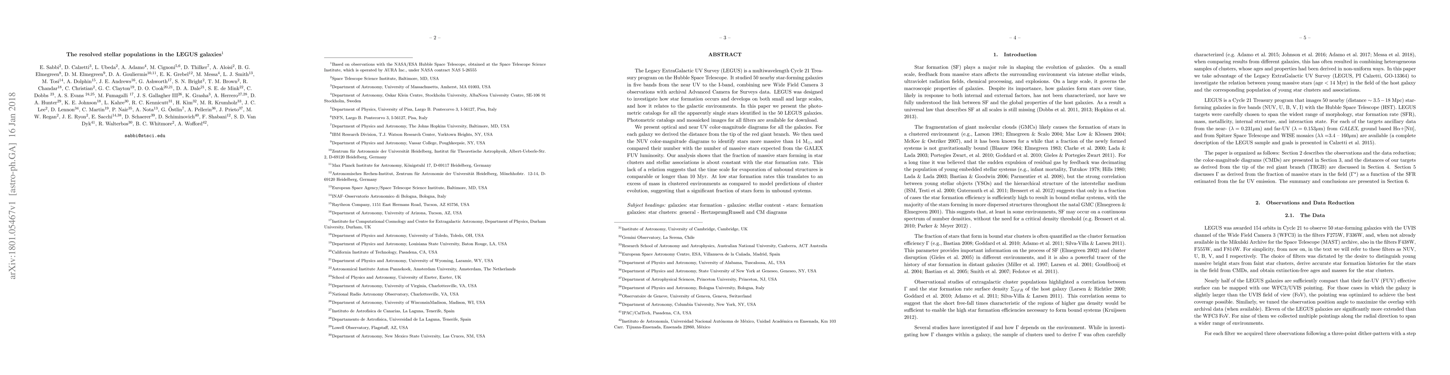 The Legacy ExtraGalactic UV Survey (LEGUS) is a multiwavelength Cycle 21 Treasury program on the Hubble Space Telescope. It studied 50 nearby star-forming galaxies in five bands from the near UV to the I-band, combining new Wide Field Camera 3 observations with archival Advanced Camera for Surveys data. LEGUS was designed to investigate how star formation occurs and develops on both small and large scales, and how it relates to the galactic environments. In this paper we present the photometric catalogs for all the apparently single stars identified in the 50 LEGUS galaxies. Photometric catalogs and mosaicked images for all filters are available for download. We present optical and near UV color-magnitude diagrams for all the galaxies. For each galaxy we derived the distance from the tip of the red giant branch. We then used the NUV color-magnitude diagrams to identify stars more massive than 14 Mo, and compared their number with the number of massive stars expected from the GALEX FUV luminosity. Our analysis shows that the fraction of massive stars forming in star clusters and stellar associations is about constant with the star formation rate. This lack of a relation suggests that the time scale for evaporation of unbound structures is comparable or longer than 10 Myr. At low star formation rates this translates to an excess of mass in clustered environments as compared to model predictions of cluster evolution, suggesting that a significant fraction of stars form in unbound systems.