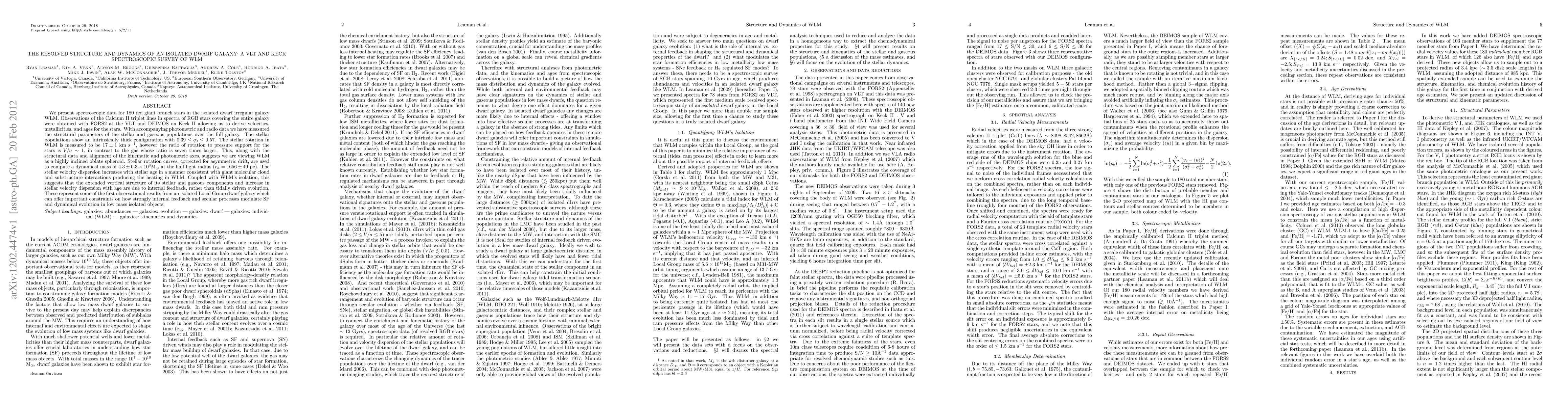 This study investigates the isolated dwarf galaxy WLM using spectroscopic data from 180 red giant branch stars, revealing a highly inclined oblate spheroid with internal feedback driving its structure and evolution.