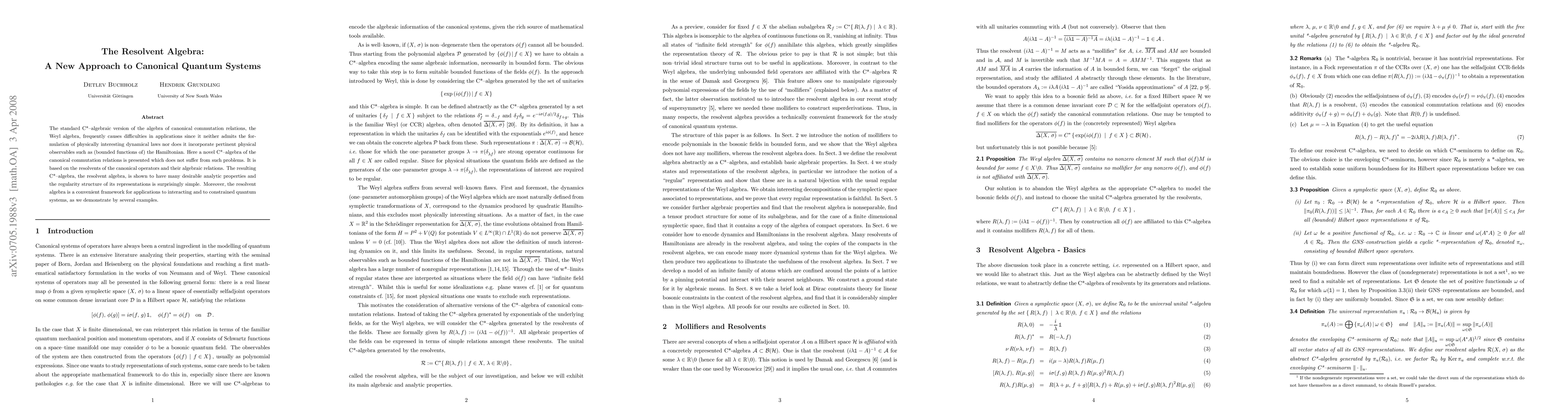 This paper introduces a new C*-algebra, the resolvent algebra, for canonical quantum systems, addressing limitations of the traditional Weyl algebra. It leverages the resolvents of canonical operators, offering better incorporation of physical observables and simpler representation structures, thus facilitating applications to interacting and constrained quantum systems.