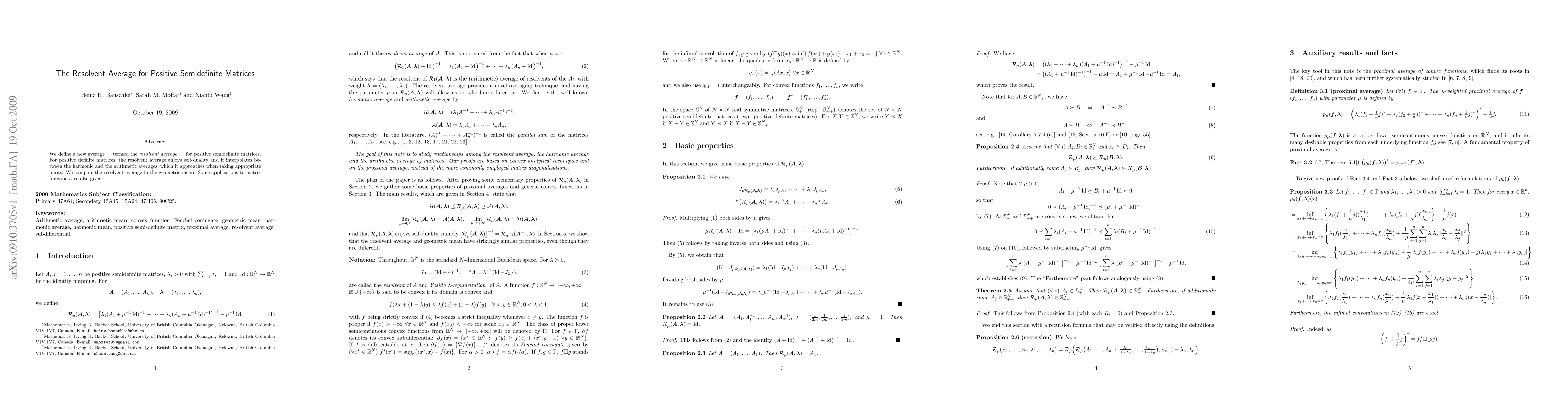 This paper introduces a new average, the resolvent average, for positive semidefinite matrices, which exhibits self-duality and interpolates between harmonic and arithmetic averages. It also compares the resolvent average with the geometric mean and explores its applications to matrix functions.