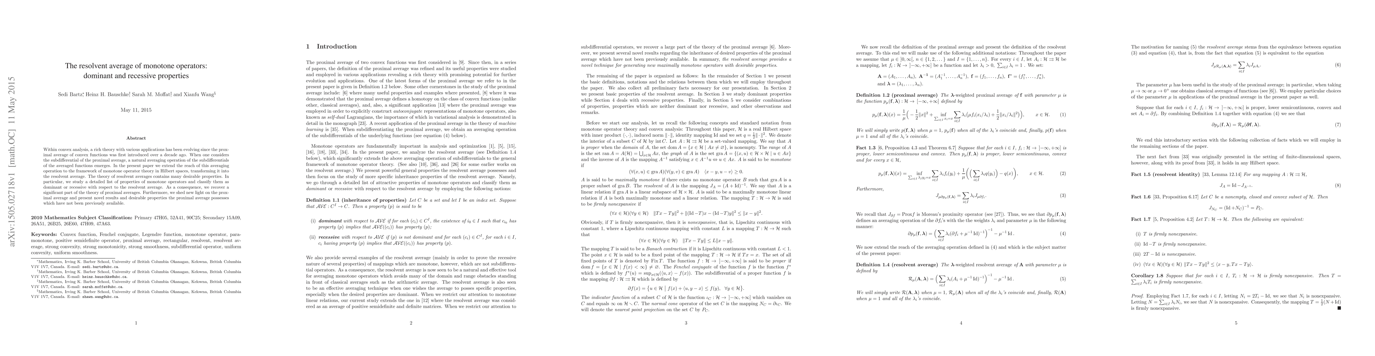 This paper extends the concept of averaging in convex analysis to monotone operator theory in Hilbert spaces, introducing the resolvent average. It classifies the properties of monotone operators as dominant or recessive with respect to this new averaging operation, recovering parts of the theory of proximal averages and revealing novel properties of the proximal average.