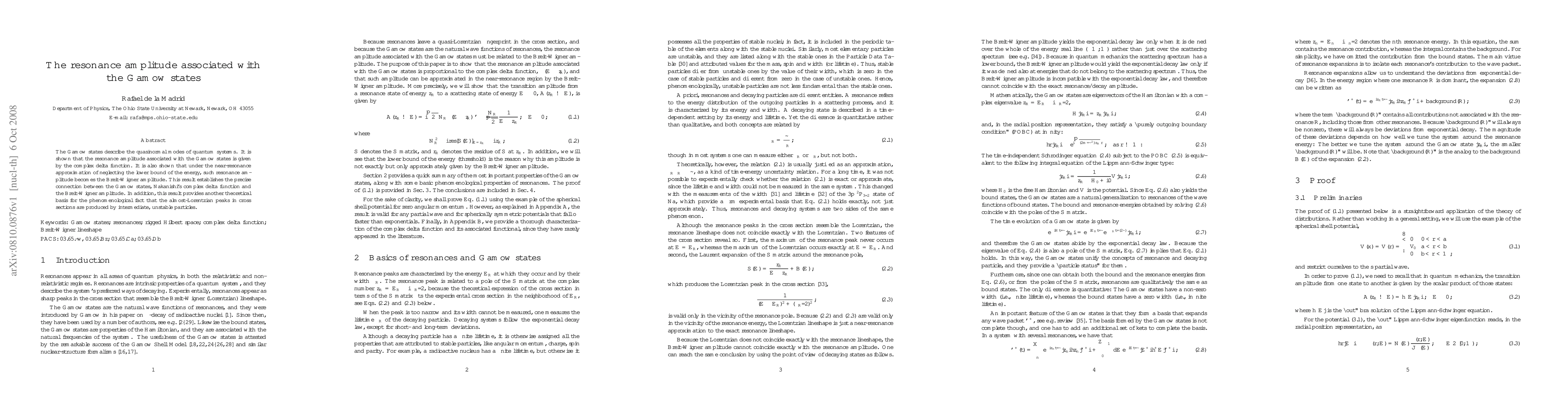 The paper establishes a connection between Gamow states, Nakanishi's complex delta function, and the Breit-Wigner amplitude, showing that the resonance amplitude of Gamow states is given by the complex delta function, which approximates the Breit-Wigner amplitude under near-resonance conditions. This provides a theoretical basis for the production of almost-Lorentzian peaks in cross sections by unstable particles.