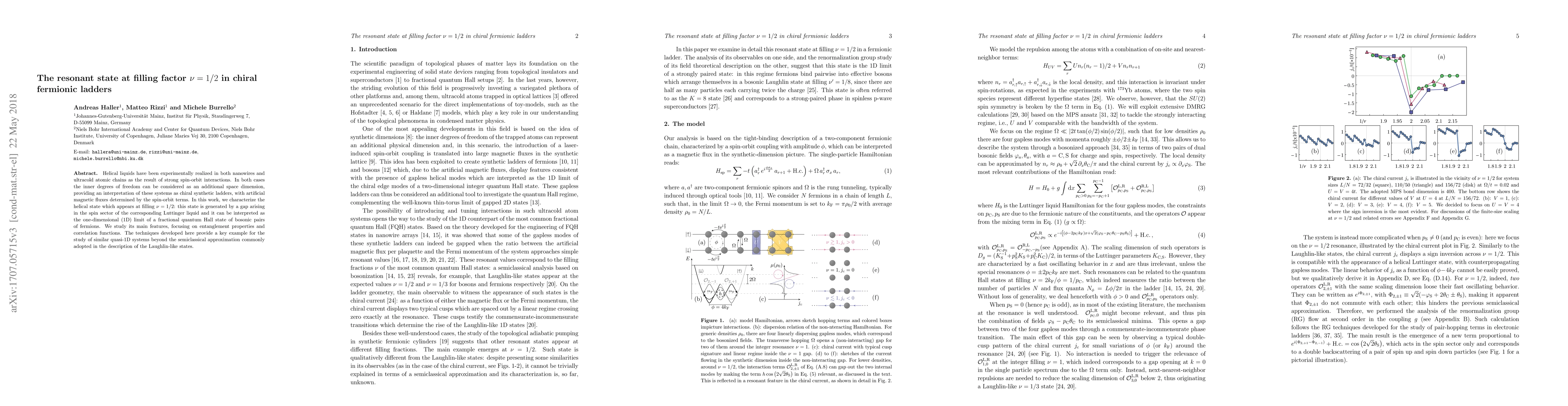 Helical liquids have been experimentally detected in both nanowires and ultracold atomic chains as the result of strong spin-orbit interactions. In both cases the inner degrees of freedom can be considered as an additional space dimension, providing an interpretation of these systems as synthetic ladders, with artificial magnetic fluxes determined by the spin-orbit terms. In this work, we characterize the helical state which appears at filling $\nu=1/2$: this state is generated by a gap arising in the spin sector of the corresponding Luttinger liquid and it can be interpreted as the one-dimensional (1D) limit of a fractional quantum Hall state of bosonic pairs of fermions. We study its main features, focusing on entanglement properties and correlation functions. The techniques developed here provide a key example for the study of similar quasi-1D systems beyond the semiclassical approximation commonly adopted in the description of the Laughlin-like states.