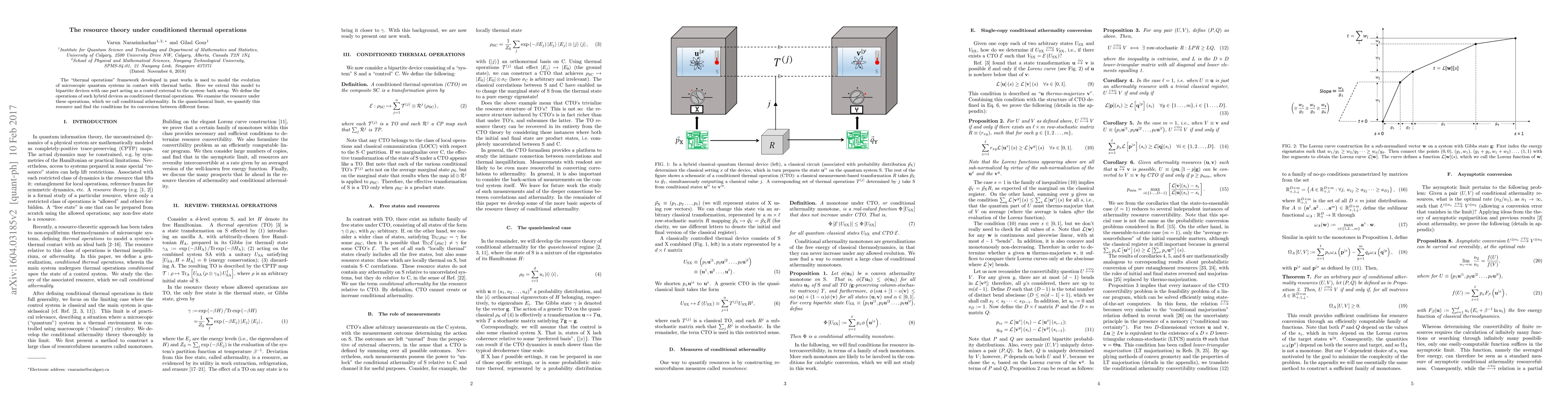 The "thermal operations" framework developed in past works is used to model the evolution of microscopic quantum systems in contact with thermal baths. Here we extend this model to bipartite devices with one part acting as a control external to the system--bath setup. We define the operations of such hybrid devices as conditioned thermal operations. We examine the resource under these operations, which we call conditional athermality. In the quasiclassical limit, we quantify this resource and find the conditions for its conversion between different forms.