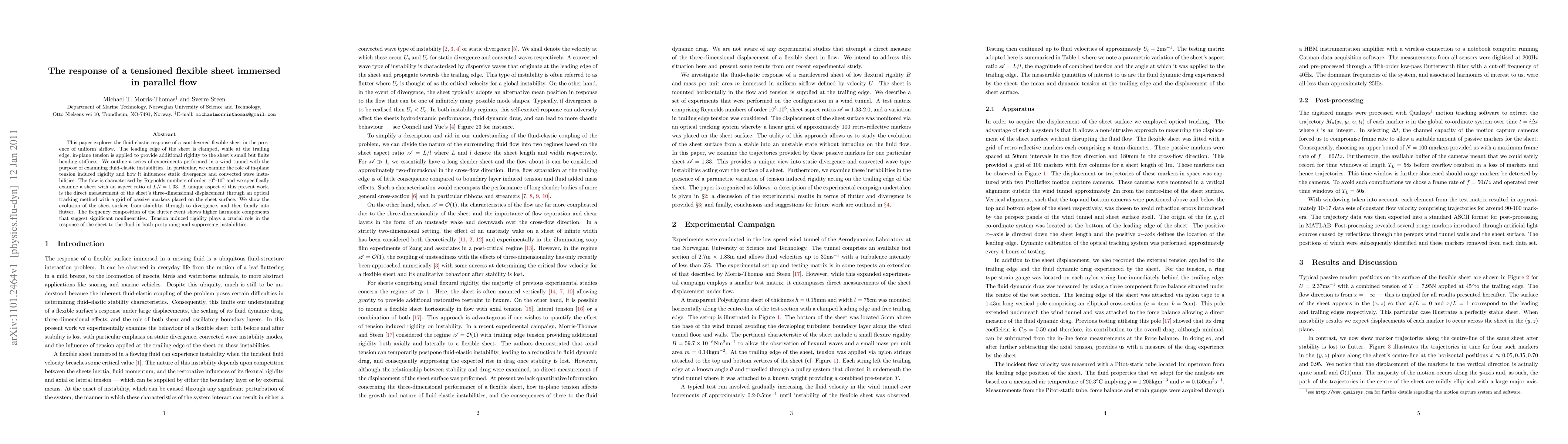 This paper explores the fluid-elastic response of a cantilevered flexible sheet in the presence of uniform airflow. The leading edge of the sheet is clamped, while at the trailing edge, in-plane tension is applied to provide additional rigidity to the sheet's small but finite bending stiffness. We outline a series of experiments performed in a wind tunnel with the purpose of examining fluid-elastic instabilities. In particular, we examine the role of in-plane tension induced rigidity and how it influences static divergence and convected wave instabilities. The flow is characterised by Reynolds numbers of order $10^5$-$10^6$ and we specifically examine a sheet with an aspect ratio of $L/l=1.33$. A unique aspect of this present work, is the direct measurement of the sheet's three-dimensional displacement through an optical tracking method with a grid of passive markers placed on the sheet surface. We show the evolution of the sheet surface from stability, through to divergence, and then finally into flutter. The frequency composition of the flutter event shows higher harmonic components that suggest significant nonlinearities. Tension induced rigidity plays a crucial role in the response of the sheet to the fluid in both postponing and suppressing instabilities.