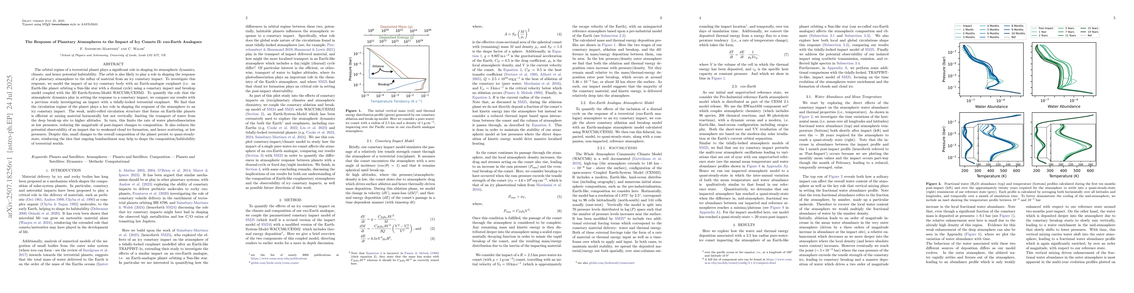 The orbital regime of a terrestrial planet plays a significant role in shaping its atmospheric dynamics, climate, and hence potential habitability. The orbit is also likely to play a role in shaping the response of a planetary atmosphere to the influx of material from an icy cometary impact. To investigate this response, we model the impact of an icy cometary body with an Earth-analogue exoplanet (i.e. an Earth-like planet orbiting a Sun-like star with a diurnal cycle) using a cometary impact and breakup model coupled with the 3D Earth-System-Model WACCM6/CESM2. To quantify the role that the atmospheric dynamics play in setting the response to a cometary impact, we compare our results with a previous study investigating an impact with a tidally-locked terrestrial exoplanet. We find that the circulation regime of the planet plays a key role in shaping the response of the atmosphere to an icy cometary impact. The weak, multi-celled circulation structure that forms on Earth-like planets is efficient at mixing material horizontally but not vertically, limiting the transport of water from the deep break-up site to higher altitudes. In turn, this limits the rate of water photodissociation at low pressures, reducing the magnitude of post-impact changes to composition. It also reduces the potential observability of an impact due to weakened cloud ice formation, and hence scattering, at low pressures. Despite this, small changes to the overall composition of the planet persist to quasi-steady-state, reinforcing the idea that ongoing bombardment may help to shape the composition/habitability of terrestrial worlds.