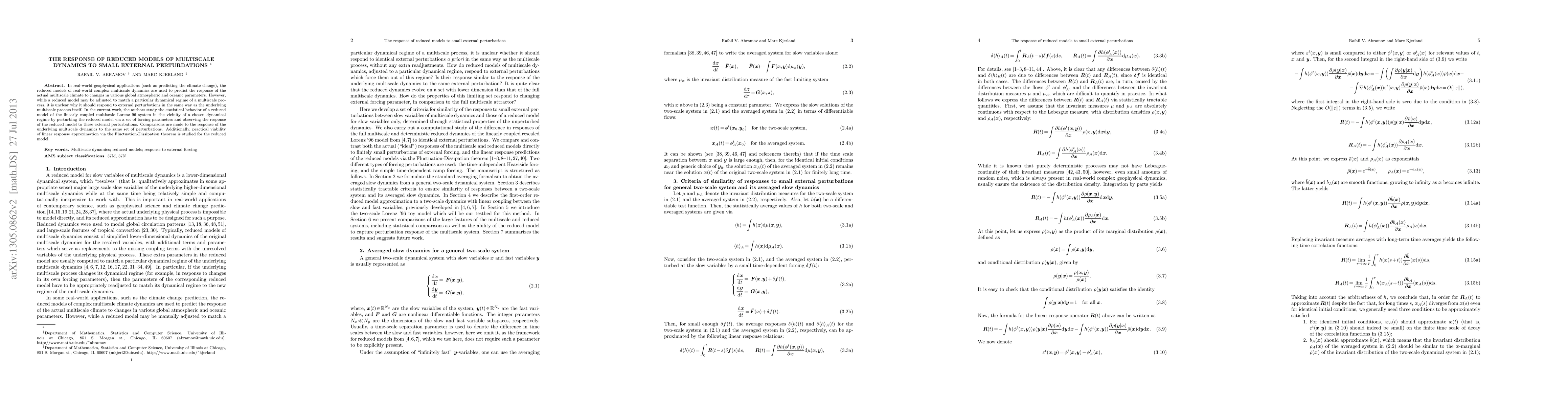 This paper investigates how reduced models of multiscale dynamics respond to small external perturbations compared to the full multiscale system, using the Lorenz 96 system as a case study. The study examines the statistical behavior of the reduced model under perturbation and assesses the practical applicability of linear response approximation.