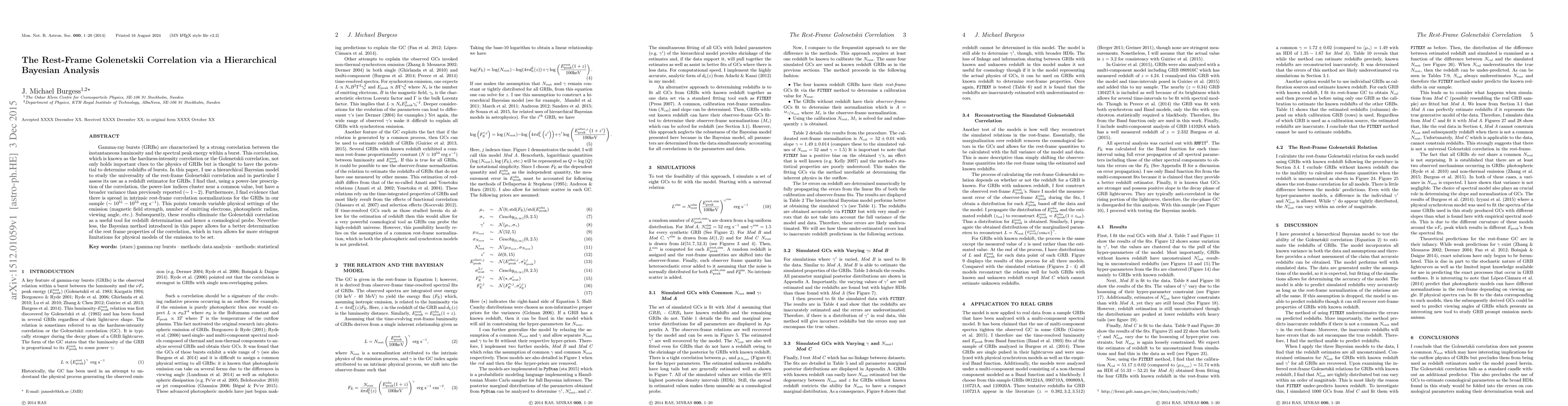 Researchers used a hierarchical Bayesian model to study the universality of gamma-ray bursts' Golenetskii correlation, finding it has a broader variance than previously reported and evidence of variable physical settings for emission.