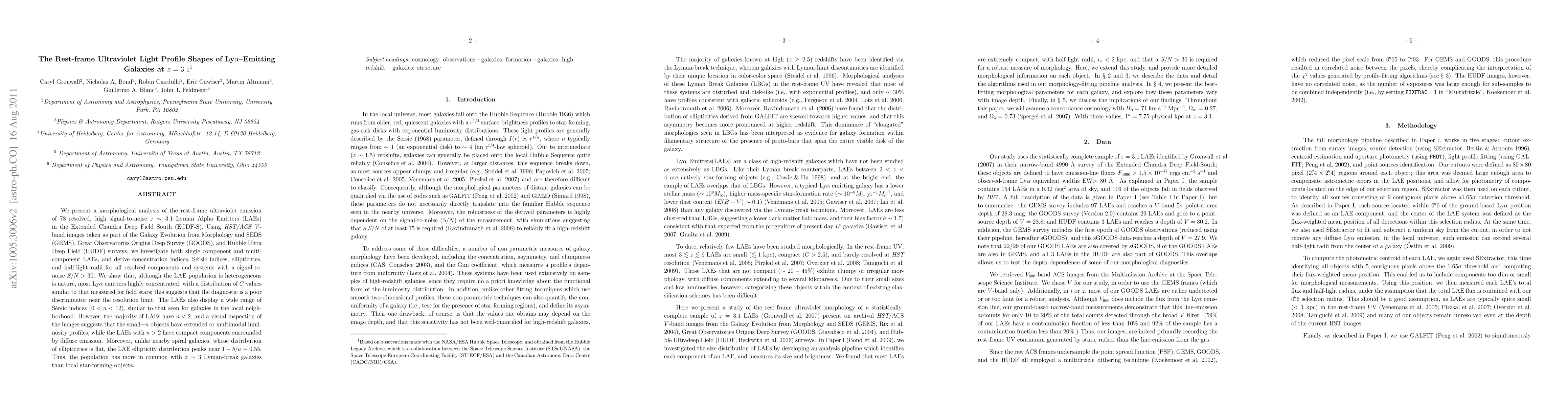 We present a rest-frame ultraviolet morphological analysis of 78 resolved, high S/N z ~ 3.1 Lyman Alpha Emitters (LAEs) in the Extended Chandra Deep Field South (ECDF-S). Using HST/ACS V -band images taken as part of the GEMS, GOODS, and HUDF surveys. For each LAE system identified via our ground-based narrow-band imaging, we have identified those LAE systems with multiple components. We measure the concentration index and present the results of our GALFIT fits for ellipticity, Sersic index, and sizes for each resolved component with S/N > 30 as well as for each LAE system with S/N > 30. The LAEs show a heterogeneous distribution of morphologies while the ma jority tend to be highly concentrated and compact in size. We only measure the morphological properties of resolved LAEs. For systems showing multiple components we also measured the morphology of the individual components. The resolved LAEs are highly concentrated (2 < C < 4) and show a similar distribution to that measured for stars, suggesting that this diagnostic is a poor discriminator near the resolution limit. The measured ellipticities for components show a distribution peaked at {\epsilon} ~ 0.55 which is significantly different from the flat distribution of ellipticities observed for local spiral galaxies and is similar to the distribution found for Lyman-break galaxies at the same redshift. There is a wide range of best-fit Sersic indices (1 < n < 10) with the majority being between 0 < n < 2. The distribution is similar to the distribution of Sersic indices seen locally. A visual inspection of the images suggests a qualitative morphological transition at n ~ 2, with small-n LAEs having extended or multimodal light distributions and relatively little diffuse emission and large-n LAEs have compact central components surrounded by diffuse emission.