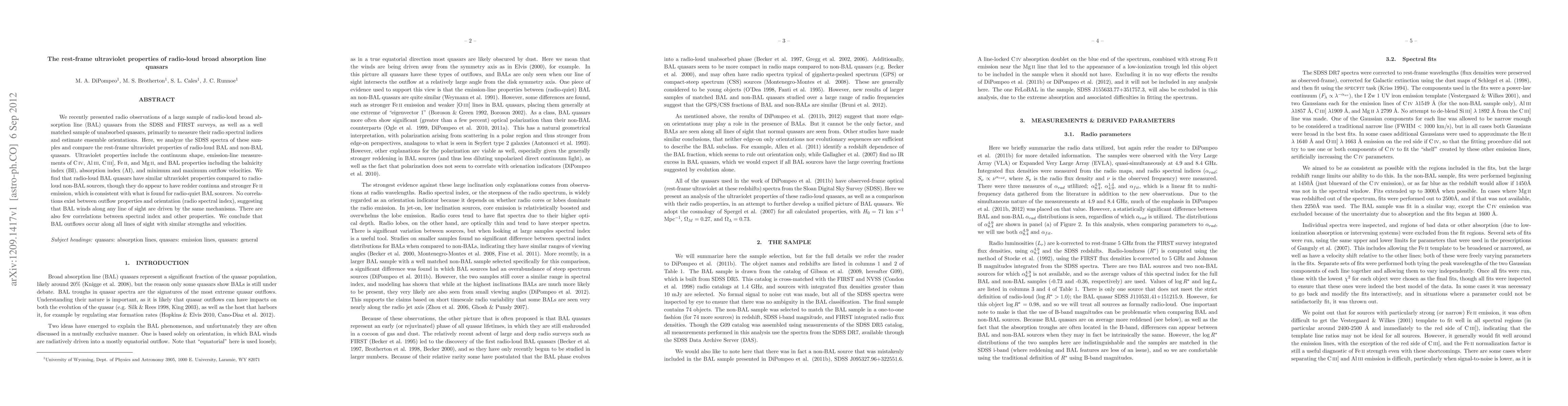 This study investigates the rest-frame ultraviolet properties of radio-loud broad absorption line (BAL) quasars compared to non-BAL quasars, finding similar continuum shapes and emission lines, though BAL quasars exhibit redder continua and stronger Fe II emission. No correlations between outflow properties and orientation suggest that BAL winds are driven by uniform mechanisms across all lines of sight.