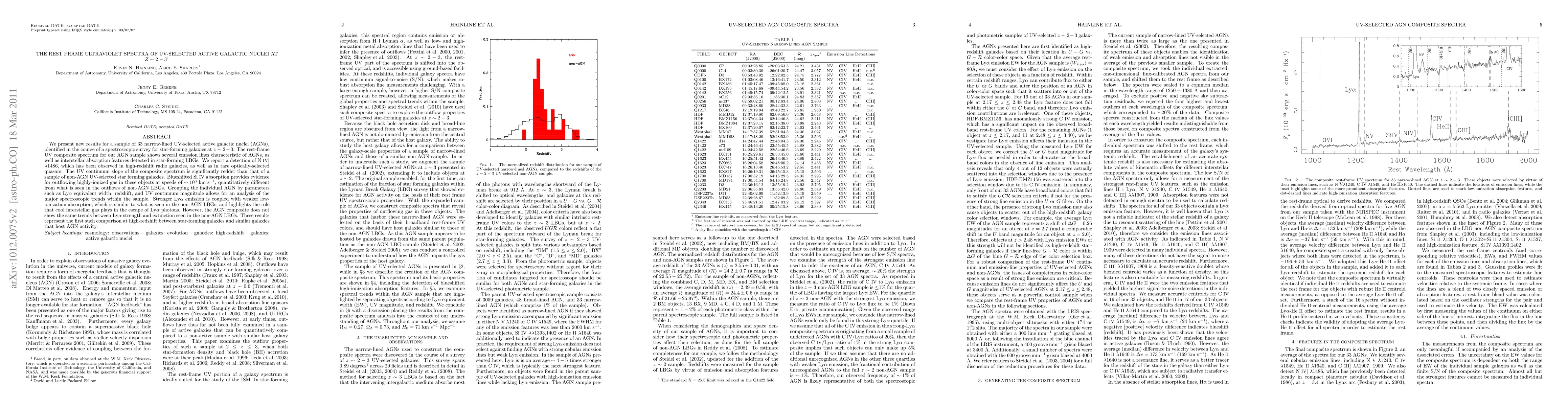 We present new results for a sample of 33 narrow-lined UV-selected active galactic nuclei (AGNs), identified in the course of a spectroscopic survey for star-forming galaxies at z ~ 2-3. The rest-frame UV composite spectrum for our AGN sample shows several emission lines characteristic of AGNs, as well as interstellar absorption features seen in star-forming Lyman Break Galaxies (LBGs). We report a detection of NIV]1486, which has been observed in high-redshift radio galaxies, as well as in rare optically-selected quasars. The UV continuum slope of the composite spectrum is significantly redder than that of a sample of non-AGN UV-selected star forming galaxies. Blueshifted SiIV absorption provides evidence for outflowing highly-ionized gas in these objects at speeds of ~ 10^(3) km/s, quantitatively different from what is seen in the outflows of non-AGN LBGs. Grouping the individual AGNs by parameters such as Ly-alpha equivalent width, redshift, and UV continuum magnitude allows for an analysis of the major spectroscopic trends within the sample. Stronger Ly-alpha emission is coupled with weaker low-ionization absorption, which is similar to what is seen in the non-AGN LBGs, and highlights the role that cool interstellar gas plays in the escape of Ly-alpha photons. However, the AGN composite does not show the same trends between Ly-alpha strength and extinction seen in the non-AGN LBGs. These results represent the first such comparison at high-redshift between star-forming galaxies and similar galaxies that host AGN activity.