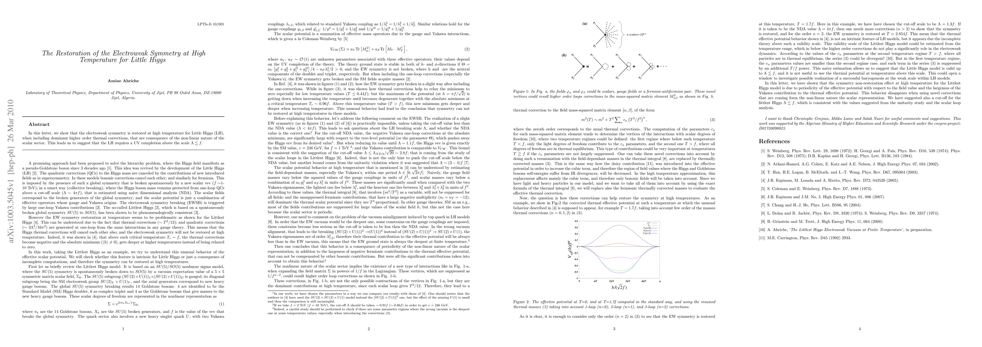 In this letter, we show that the electroweak symmetry is restored at high temperature for Little Higgs (LH), when including dominant higher order thermal corrections, that are consequence of the non-linear nature of the scalar sector. This leads us to suggest that the LH requires a UV completion above the scale $\Lambda\lesssim f$.