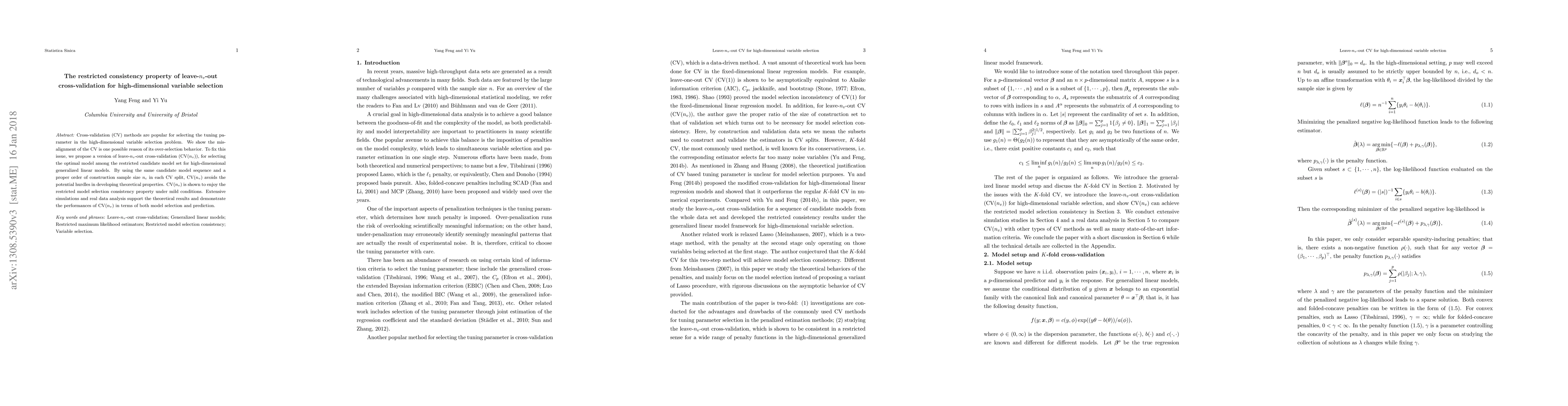 This paper proposes a leave-$n_v$-out cross-validation method to address over-selection in high-dimensional variable selection, demonstrating its restricted model selection consistency under mild conditions. Simulations and real data analyses validate the method's effectiveness in model selection and prediction.