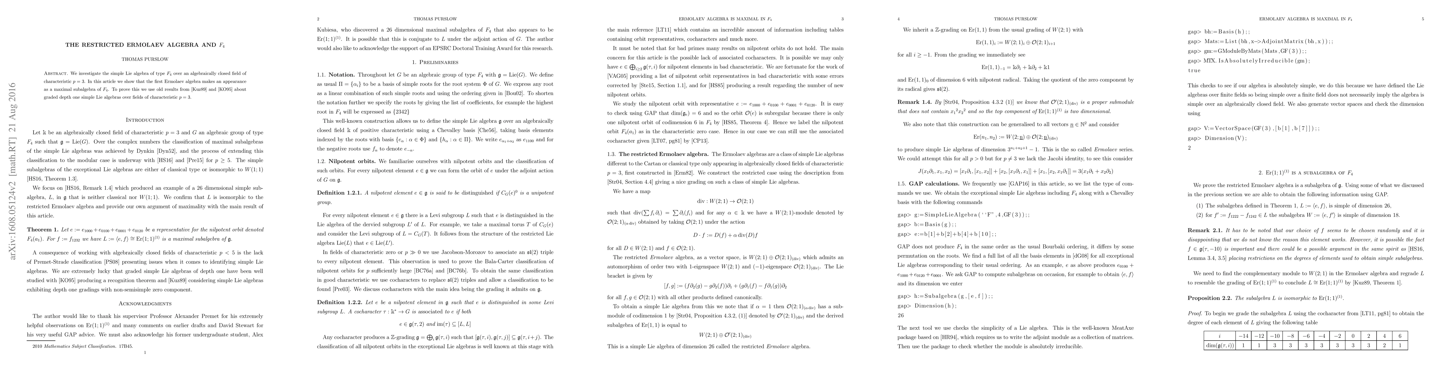 We investigate the simple Lie algebra of type $F_4$ over an algebraically closed field of characteristic $p=3$. In this article we show that the restricted Ermolaev algebra makes an appearance as a maximal subalgebra of $F_4$.