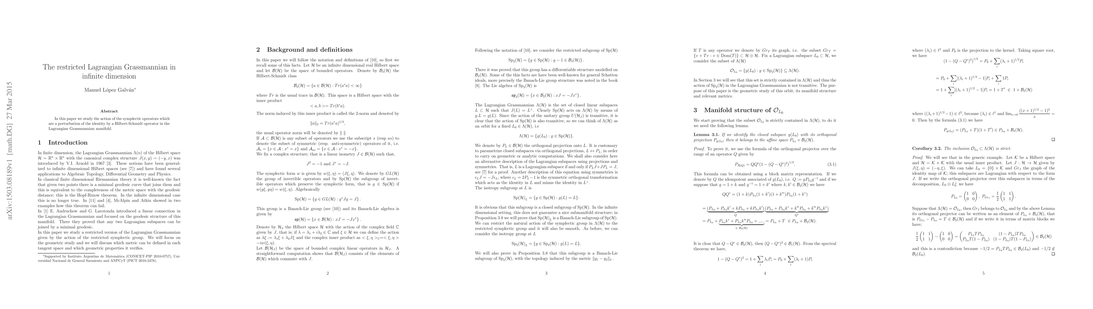Summary: This paper investigates the effect of symplectic operators, which are slight perturbations of the identity by Hilbert-Schmidt operators, on the infinite-dimensional Lagrangian Grassmannian manifold. The focus is on understanding the dynamics and structural properties introduced by these perturbations.