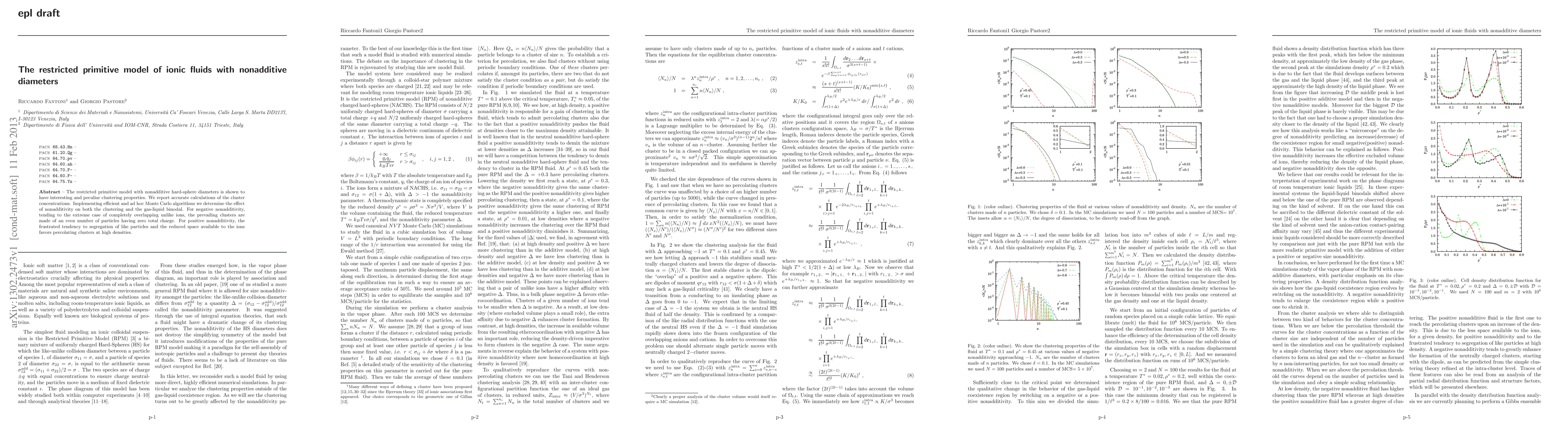 This paper explores the restricted primitive model of ionic fluids with nonadditive hard-sphere diameters, revealing unique clustering behaviors. Through Monte Carlo simulations, it finds that negative nonadditivity leads to clusters of even-charged particles, while positive nonadditivity favors percolating clusters at high densities.