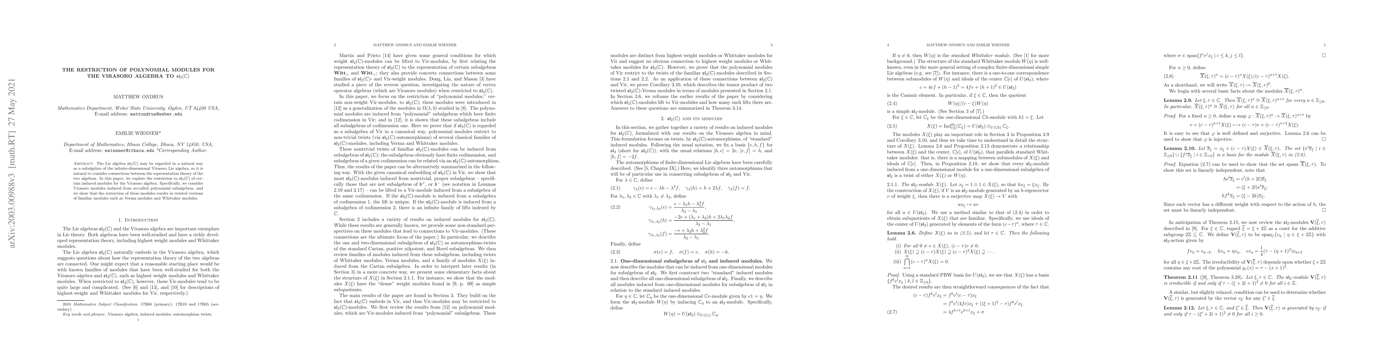 This paper investigates the representation theory connection between the Virasoro algebra and its subalgebra $sl_2 (\mathbb{C})$ by examining the restriction of Virasoro modules induced from polynomial subalgebras, demonstrating that these restrictions yield twisted versions of Verma and Whittaker modules.