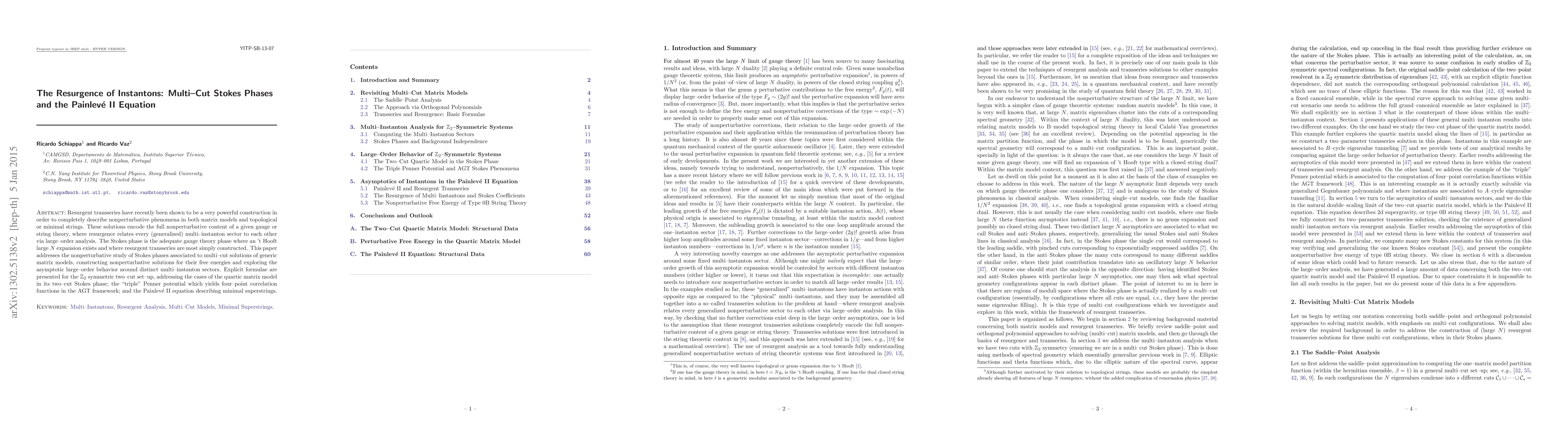 This paper explores nonperturbative phenomena in matrix models and topological strings using resurgent transseries, focusing on multi-cut Stokes phases and their large-order behavior. It presents explicit solutions for the free energies of multi-instanton sectors in specific models, including the quartic matrix model, Penner potential, and the Painlevé II equation.