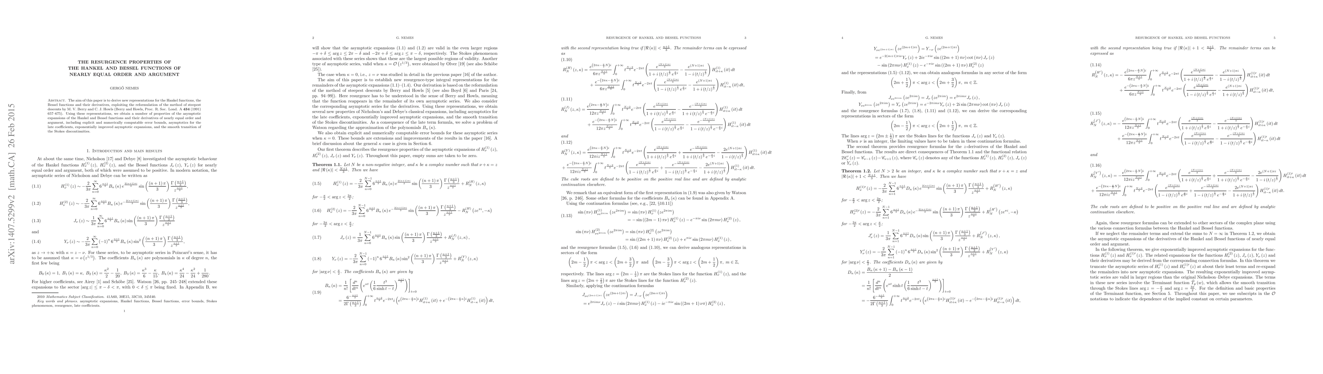This paper derives new representations for Hankel and Bessel functions using the method of steepest descents, providing improved asymptotic expansions and error bounds for these functions of nearly equal order and argument, along with insights into their transition behavior.