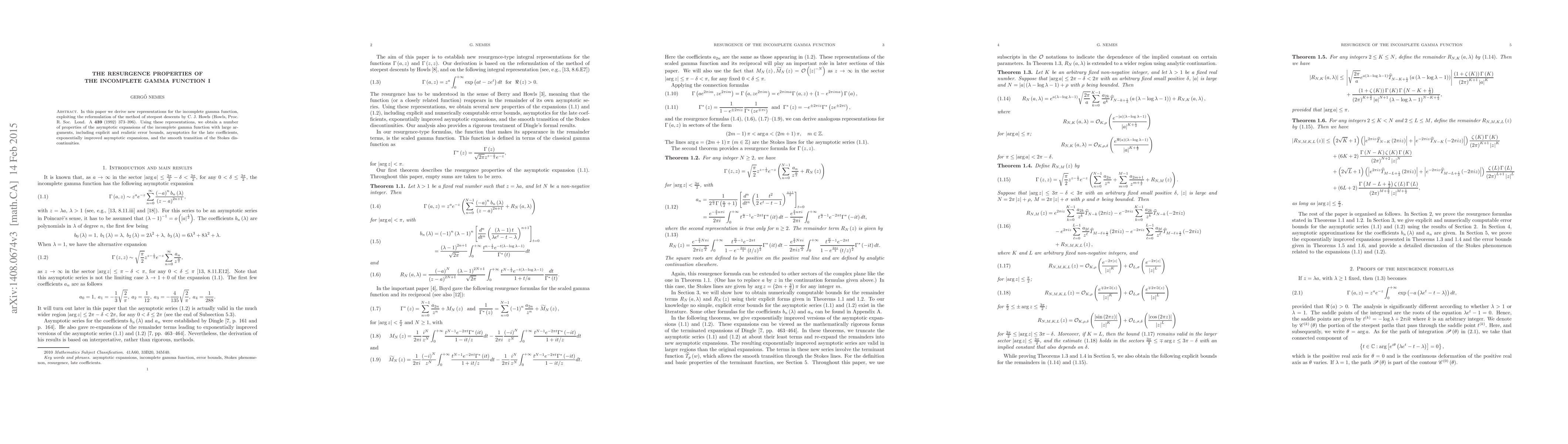 This paper derives new representations for the incomplete gamma function using C. J. Howls' reformulated method of steepest descents, leading to improved asymptotic expansions, error bounds, and insights into the behavior of late coefficients and Stokes discontinuities.