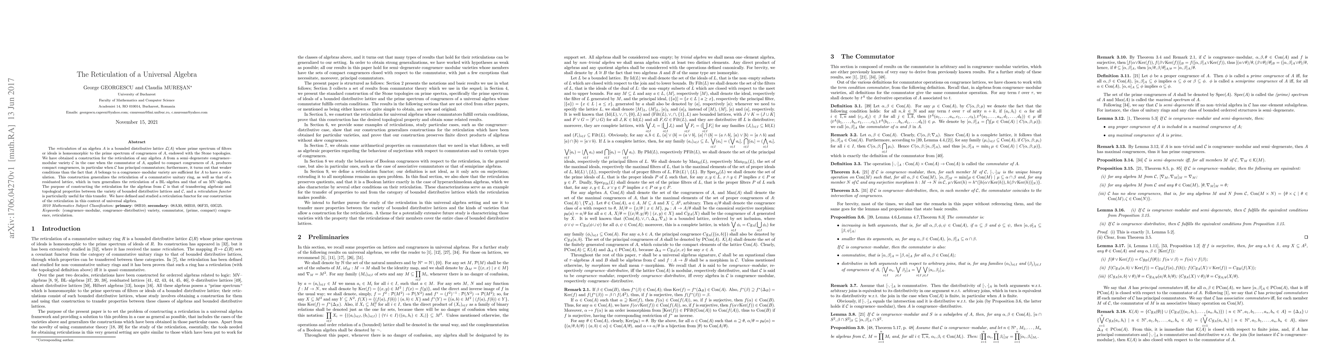 The reticulation of an algebra $A$ is a bounded distributive lattice ${\cal L}(A)$ whose prime spectrum of filters or ideals is homeomorphic to the prime spectrum of congruences of $A$, endowed with the Stone topologies. We have obtained a construction for the reticulation of any algebra $A$ from a semi-degenerate congruence-modular variety ${\cal C}$ in the case when the commutator of $A$, applied to compact congruences of $A$, produces compact congruences, in particular when ${\cal C}$ has principal commutators; furthermore, it turns out that weaker conditions than the fact that $A$ belongs to a congruence-modular variety are sufficient for $A$ to have a reticulation. This construction generalizes the reticulation of a commutative unitary ring, as well as that of a residuated lattice, which in turn generalizes the reticulation of a BL-algebra and that of an MV-algebra. The purpose of constructing the reticulation for the algebras from ${\cal C}$ is that of transferring algebraic and topological properties between the variety of bounded distributive lattices and ${\cal C}$, and a reticulation functor is particularily useful for this transfer. We have defined and studied a reticulation functor for our construction of the reticulation in this context of universal algebra.