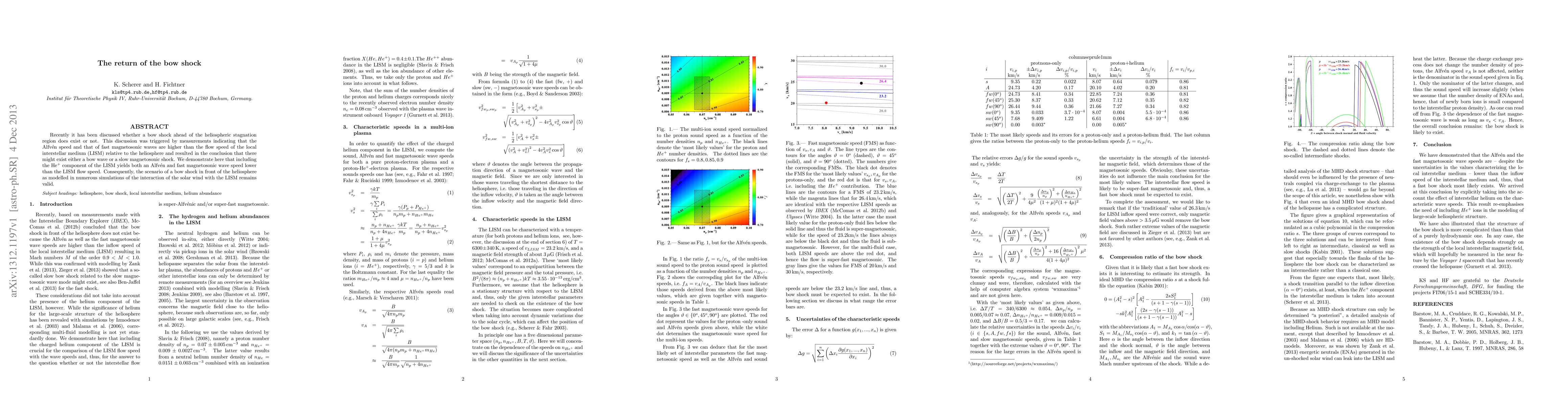 Recently it has been discussed whether a bow shock ahead of the heliospheric stagnation region does exist or not. This discussion was triggered by measurements indicating that the Alfv\'en speed and that of fast magnetosonic waves are higher than the flow speed of the local interstellar medium (LISM) relative to the heliosphere and resulted in the conclusion that there might exist either a bow wave or a slow magnetosonic shock. We demonstrate here that including the He$^{+}$ component of the LISM yields both an Alfv\'en and fast magnetosonic wave speed lower than the LISM flow speed. Consequently, the scenario of a bow shock in front of the heliosphere as modelled in numerous simulations of the interaction of the solar wind with the LISM remains valid.