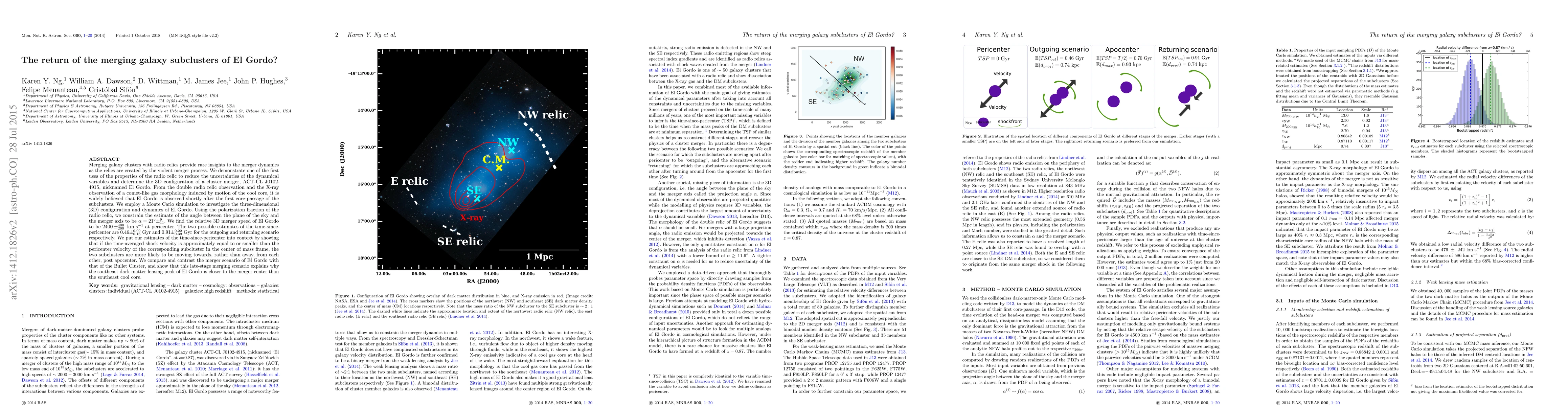 This study investigates the merger dynamics of the galaxy cluster El Gordo using radio relics and X-ray observations, determining a 3D configuration and estimating the merger speed and time-since-pericenter. The findings suggest that the subclusters may still be converging post apocenter, contrasting with typical late-stage merger scenarios.