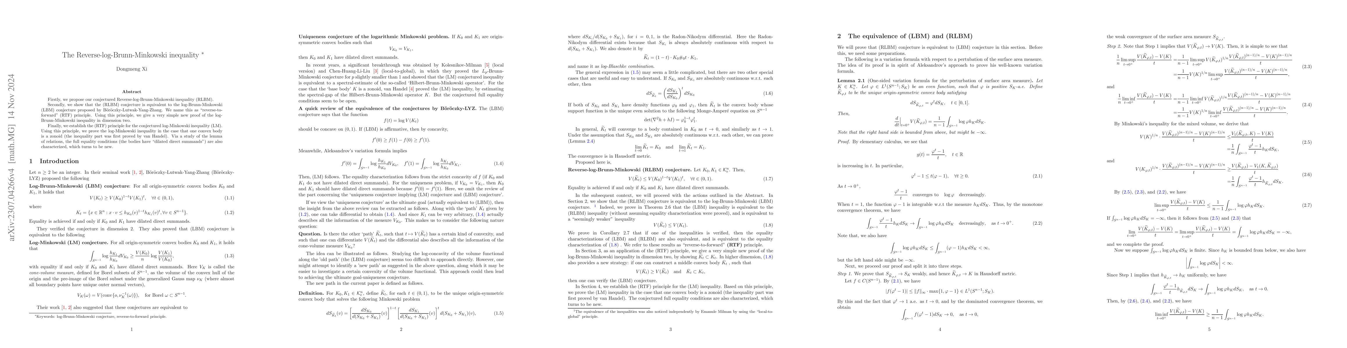 Summary: The paper introduces a conjectured Reverse-log-Brunn-Minkowski inequality (RLBM) and demonstrates its equivalence to the log-Brunn-Minkowski (LBM) conjecture, establishing a "reverse-to-forward principle." This principle is used to provide a simplified proof of the LBM inequality in dimension two and extend it to prove the log-Minkowski inequality under specific conditions, while also characterizing new equality conditions.