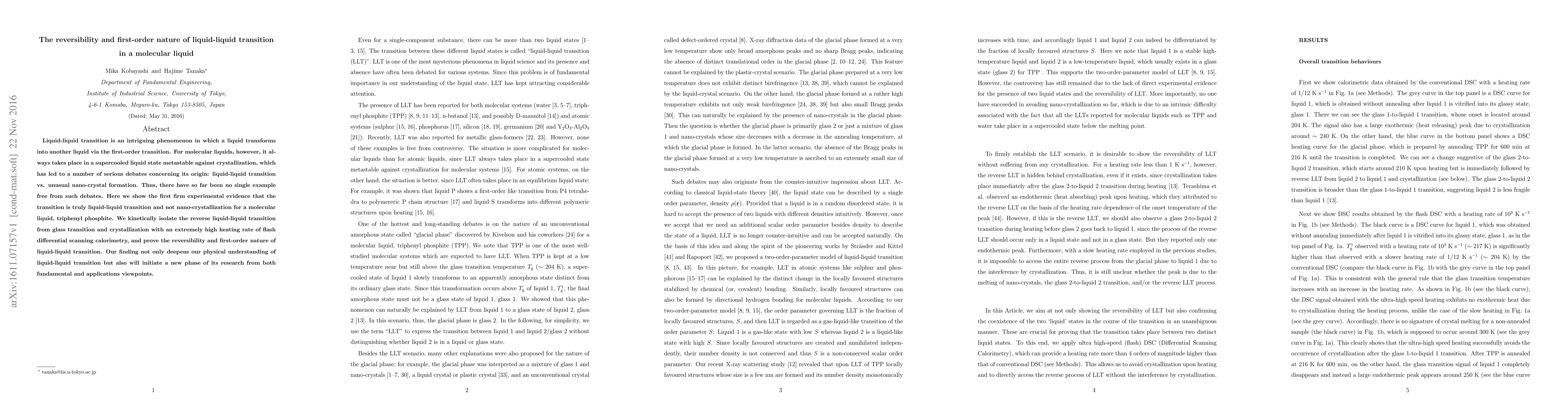 This paper provides the first conclusive evidence of a reversible, first-order liquid-liquid transition in triphenyl phosphite, using flash differential scanning calorimetry. This finding dispels debates about whether such transitions are due to nano-crystallization, advancing our understanding of this phenomenon.