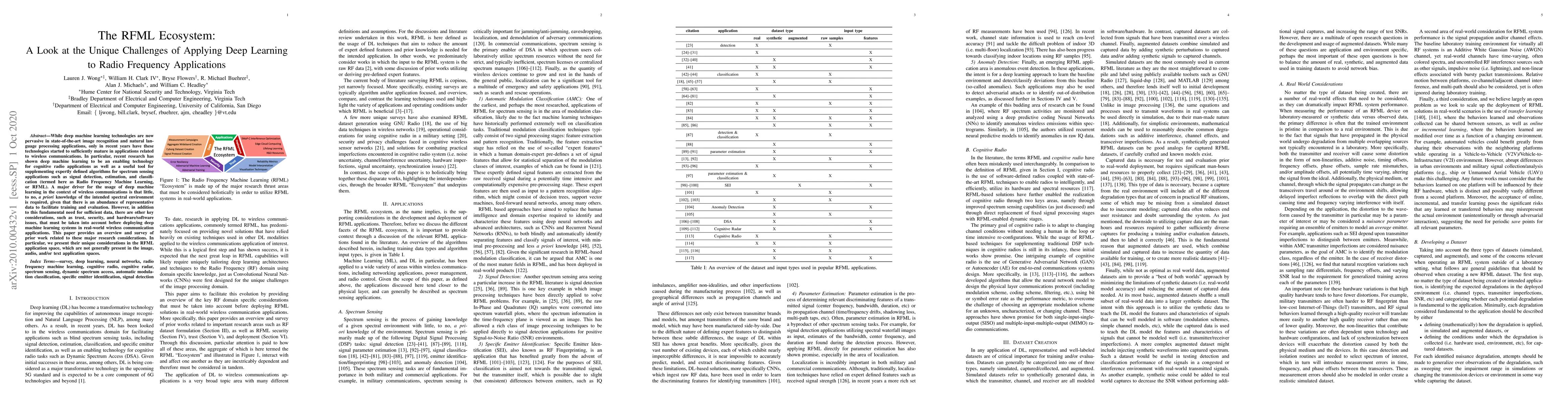 While deep machine learning technologies are now pervasive in state-of-the-art image recognition and natural language processing applications, only in recent years have these technologies started to sufficiently mature in applications related to wireless communications. In particular, recent research has shown deep machine learning to be an enabling technology for cognitive radio applications as well as a useful tool for supplementing expertly defined algorithms for spectrum sensing applications such as signal detection, estimation, and classification (termed here as Radio Frequency Machine Learning, or RFML). A major driver for the usage of deep machine learning in the context of wireless communications is that little, to no, a priori knowledge of the intended spectral environment is required, given that there is an abundance of representative data to facilitate training and evaluation. However, in addition to this fundamental need for sufficient data, there are other key considerations, such as trust, security, and hardware/software issues, that must be taken into account before deploying deep machine learning systems in real-world wireless communication applications. This paper provides an overview and survey of prior work related to these major research considerations. In particular, we present their unique considerations in the RFML application space, which are not generally present in the image, audio, and/or text application spaces.