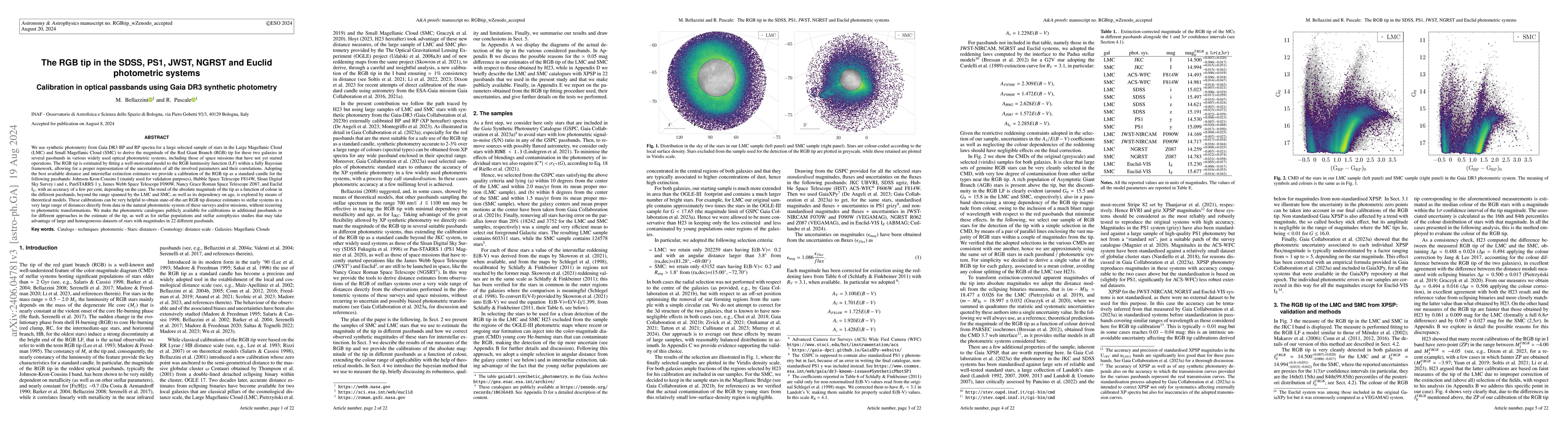 This research uses Gaia DR3 synthetic photometry to calibrate the Red Giant Branch (RGB) tip in various optical passbands for the LMC and SMC, providing a standard candle calibration for systems including SDSS, PS1, JWST, NGRST, and Euclid with an accuracy of a few percent. The study also explores the RGB tip's color and age dependencies using theoretical models.